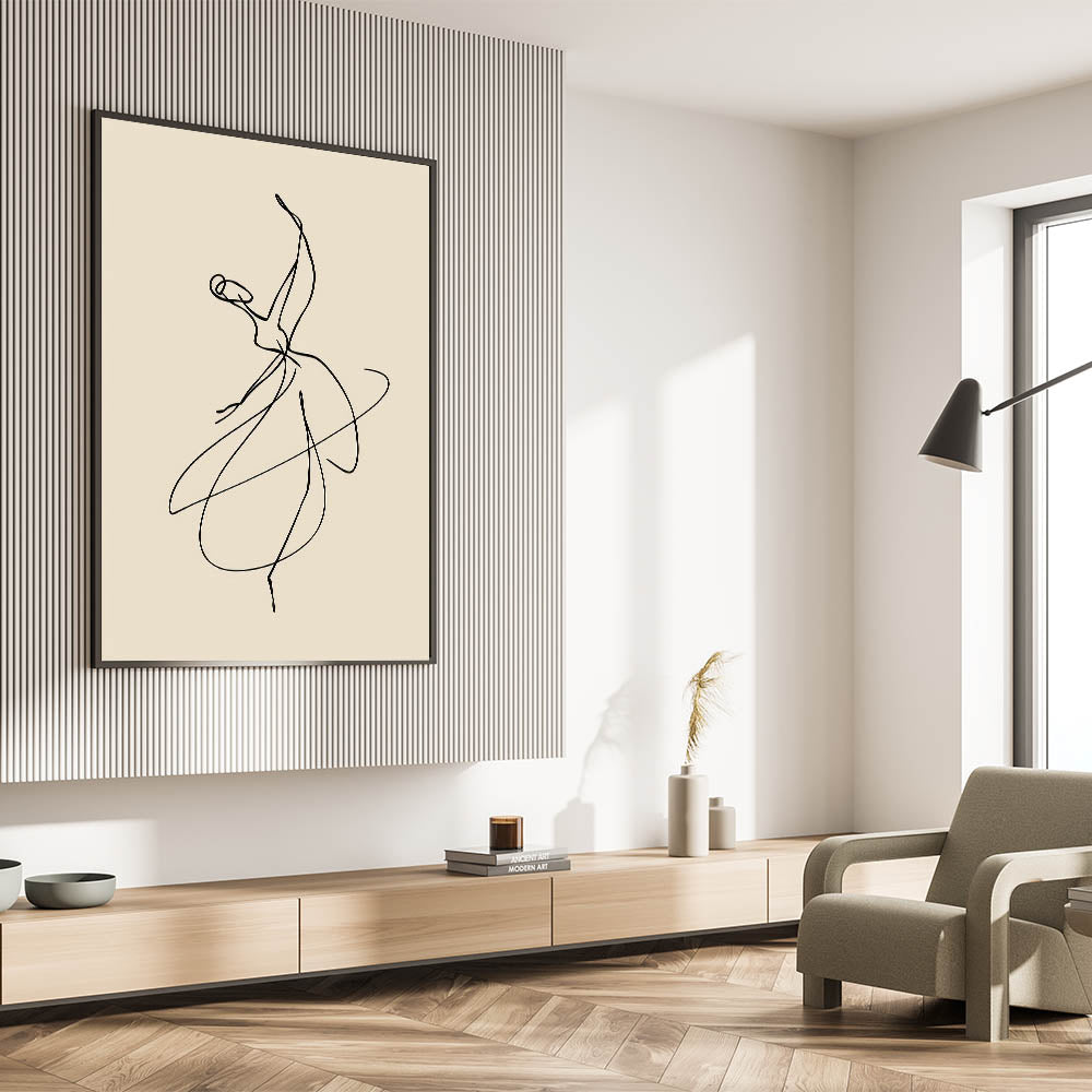 This artwork is perfect for those who appreciate the beauty of simplicity and movement. The clean lines and elegant form of the dancer make it a statement piece that blends effortlessly into various décor styles.