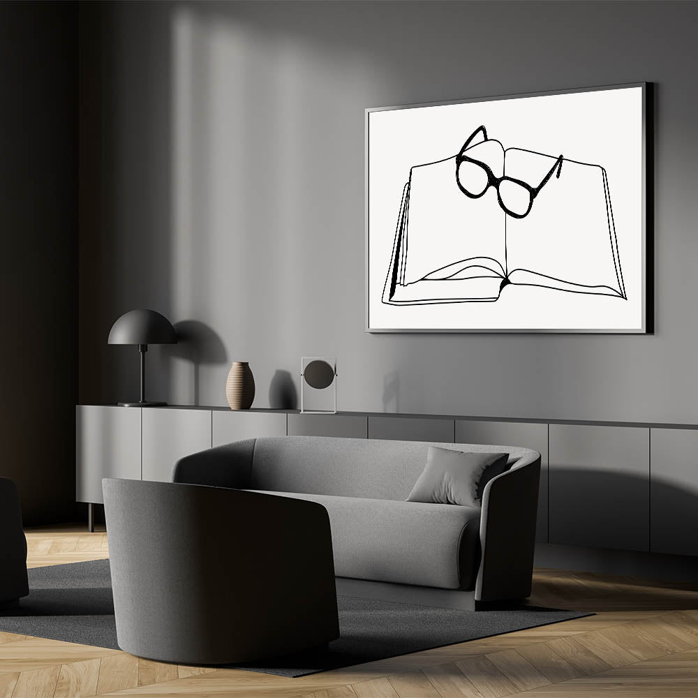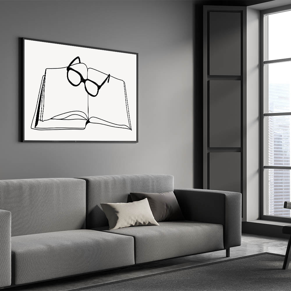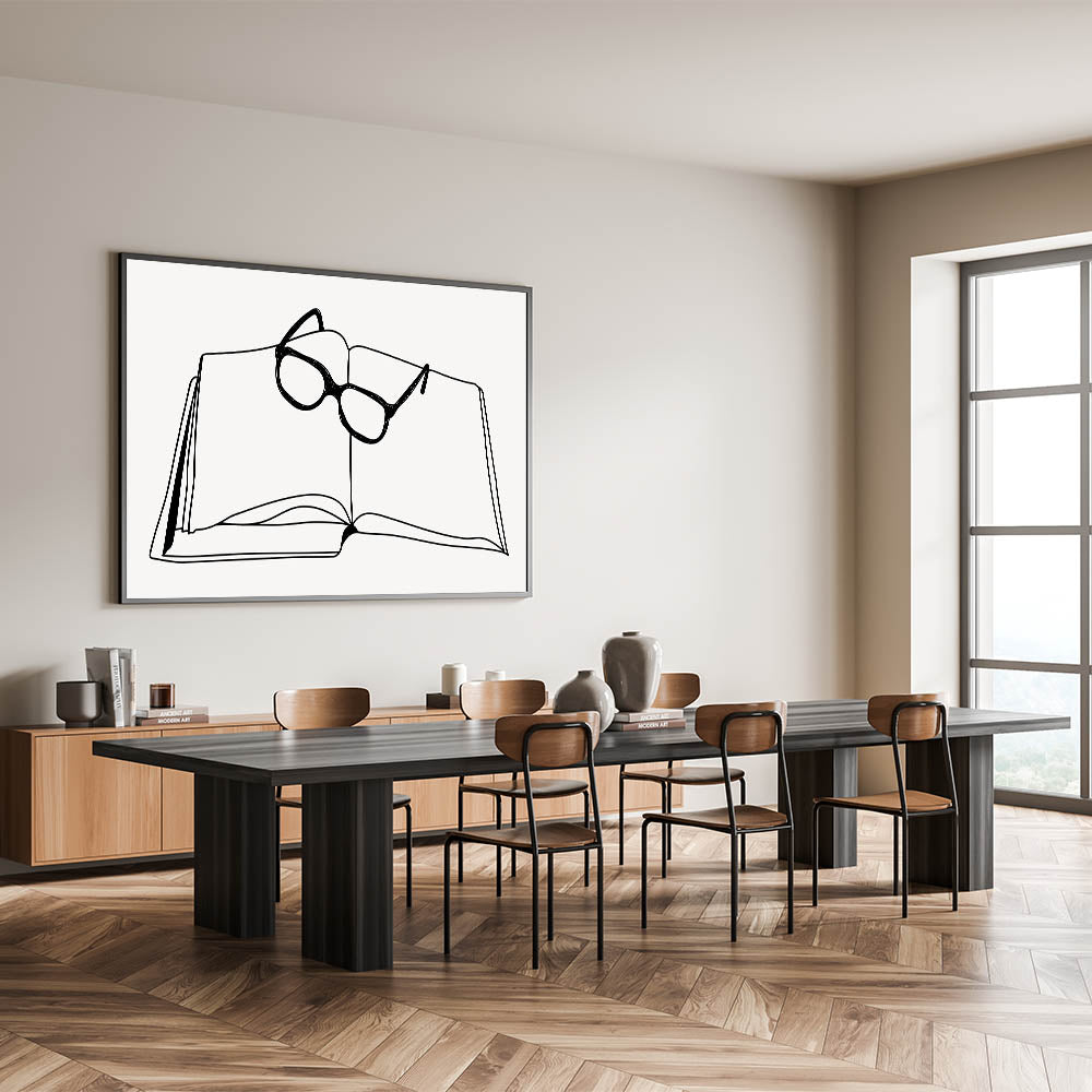 Bring a sense of quiet contemplation to your space with this bohemian wall art, featuring a minimalist line drawing of an open book with glasses resting on top. This clean, elegant design is perfect for those who appreciate both simplicity and intellectual charm in their decor. Whether placed in a home library, study, or living room, this boho decor canvas adds a touch of sophistication and thoughtfulness to any space.