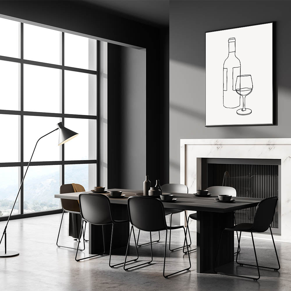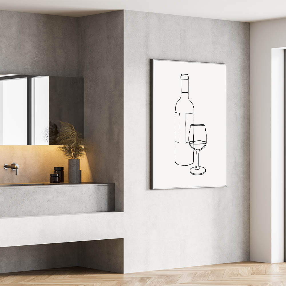 Bring a touch of elegance to your space with this minimalist Bohemian wall art, featuring a black line drawing of a wine bottle and glass. Perfect for wine lovers and those who appreciate simple, modern designs, this artwork captures the essence of sophistication with its clean lines and balanced composition. Whether you’re decorating your kitchen, dining room, or bar area, this piece adds a refined, artistic touch to your home.