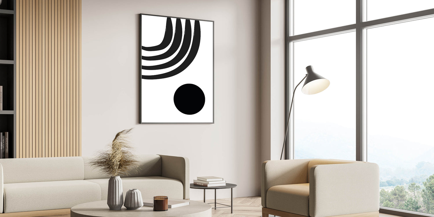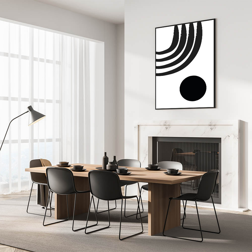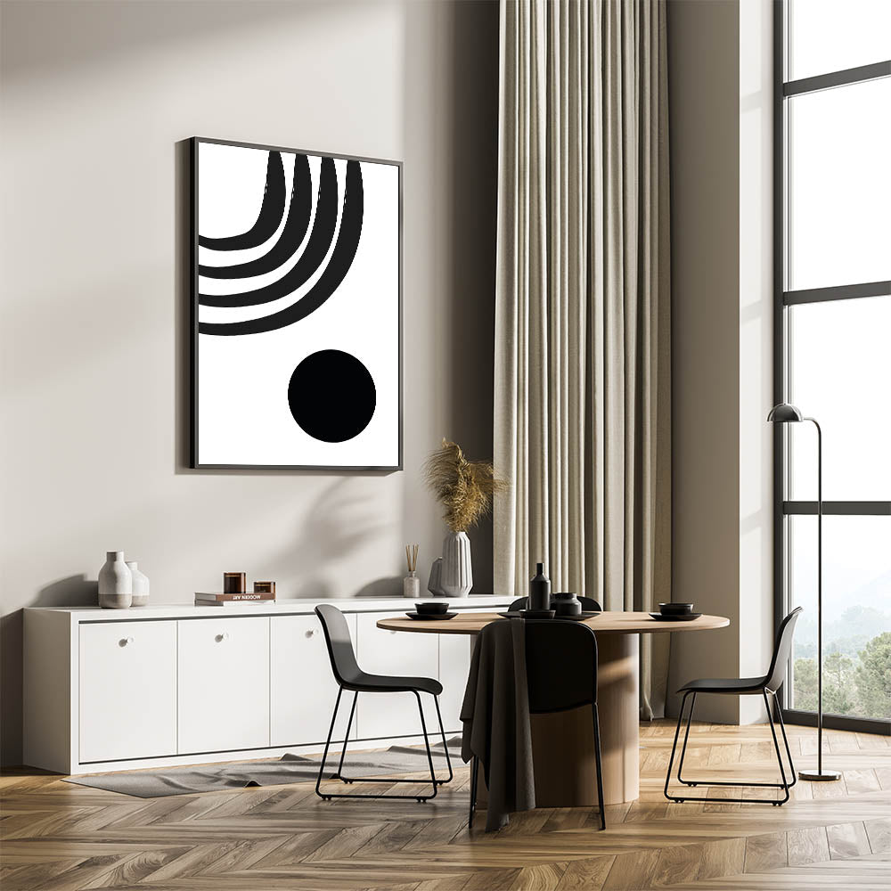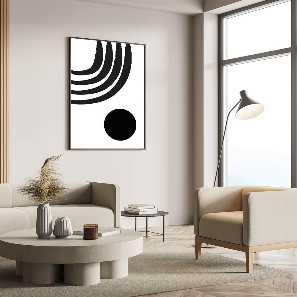 This minimalist black-and-white design is perfect for creating a calm, stylish atmosphere in any room. Its simple yet impactful composition adds a touch of modern elegance, making it an excellent choice for those who appreciate minimalist aesthetics.