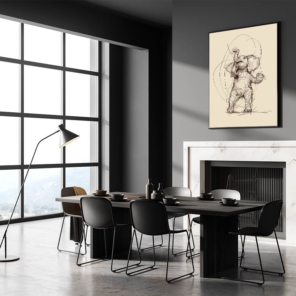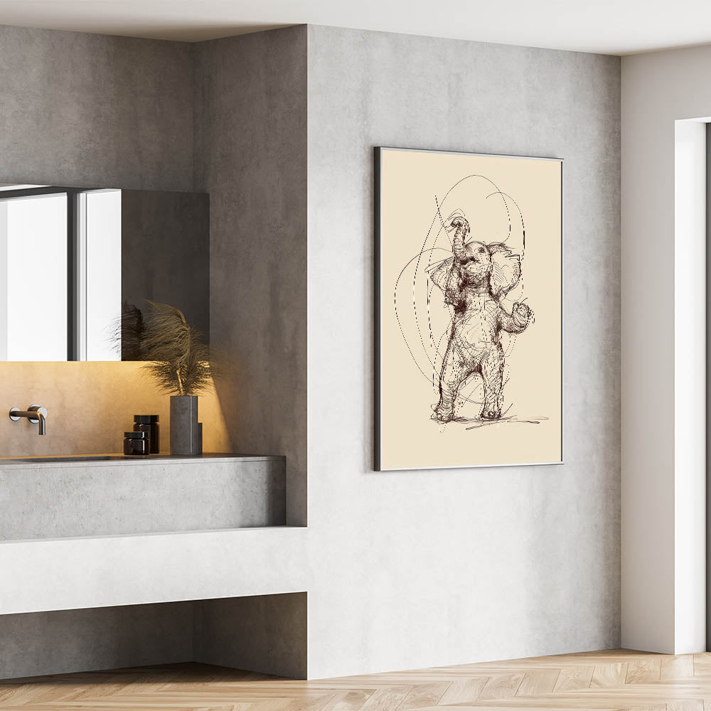 This piece is perfect for animal lovers and those who appreciate expressive and lively art. The sketch-style lines and whimsical nature of the elephant create a sense of movement and joy, making it a standout piece in any home.