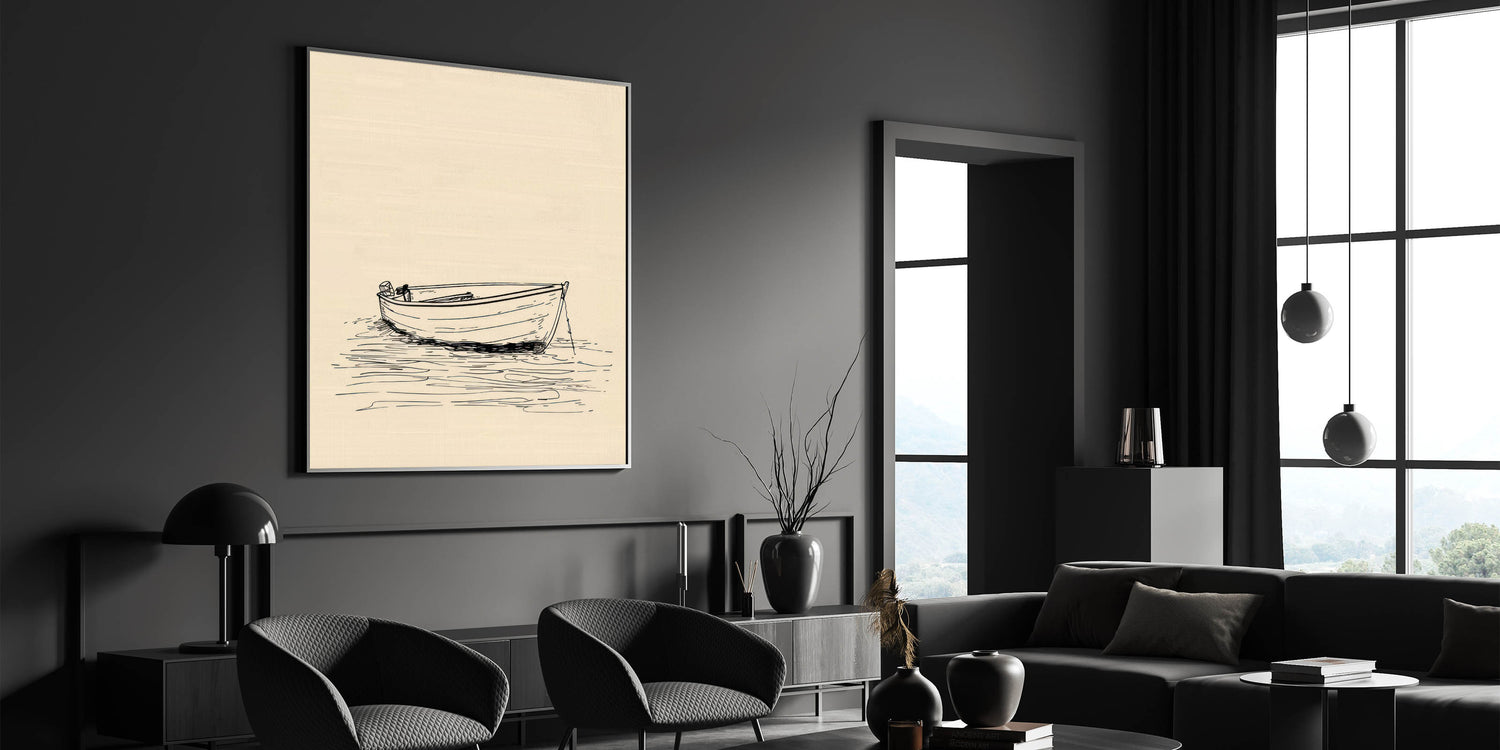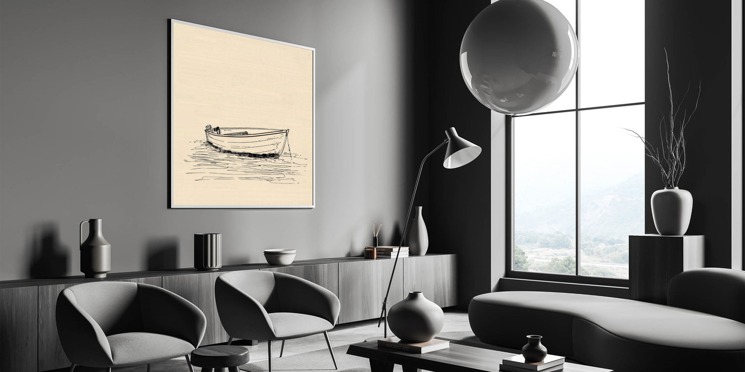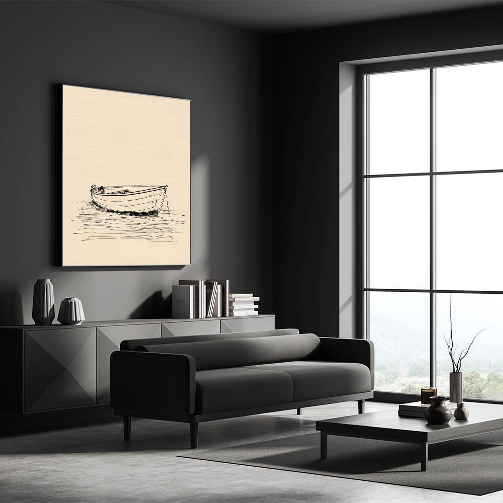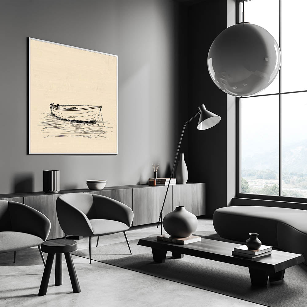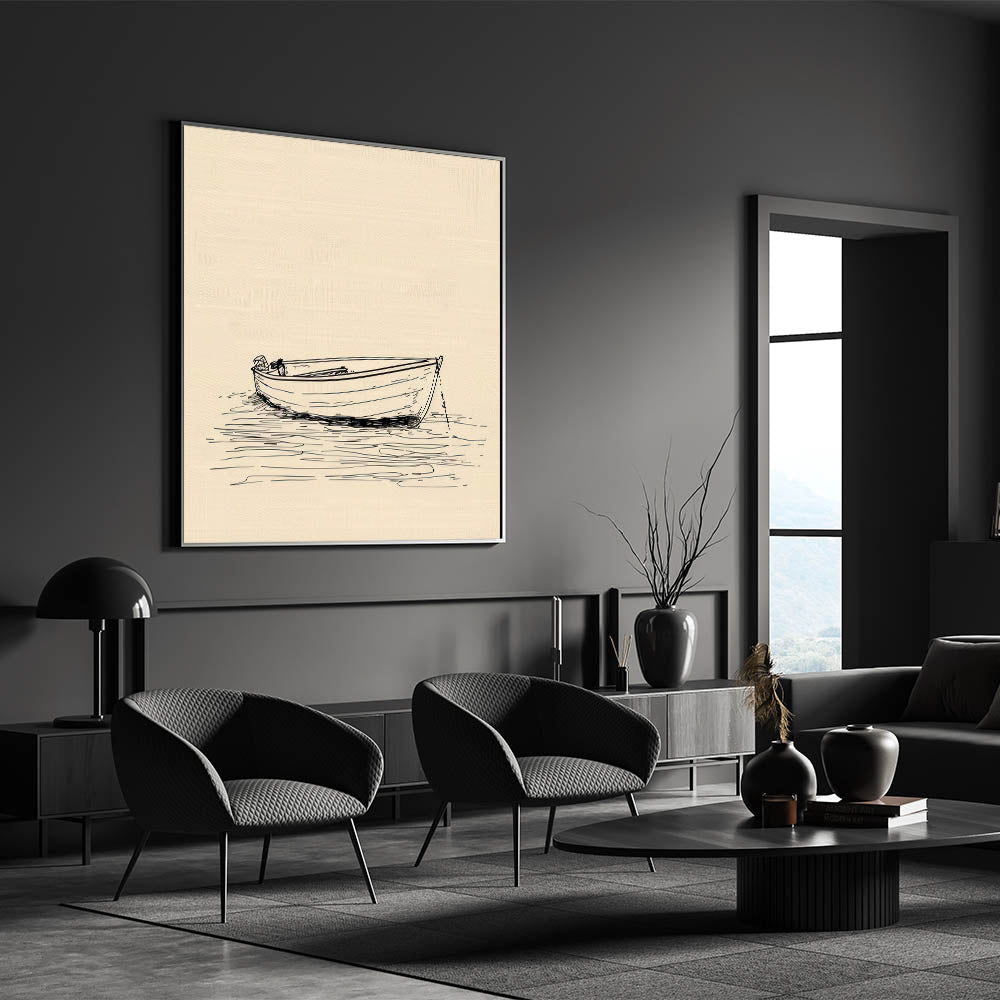 Bring a sense of tranquility and calm into your home with this minimalist Bohemian wall art. Featuring a beautifully sketched boat floating gently on the water, this artwork embodies simplicity and serenity. The delicate black linework contrasts against the soft beige background, creating a peaceful aesthetic that suits a variety of interior styles, from boho chic to coastal and modern. Whether placed in your living room, bedroom, or even a beach house, this boho-inspired art print adds a touch of elegance to your space.