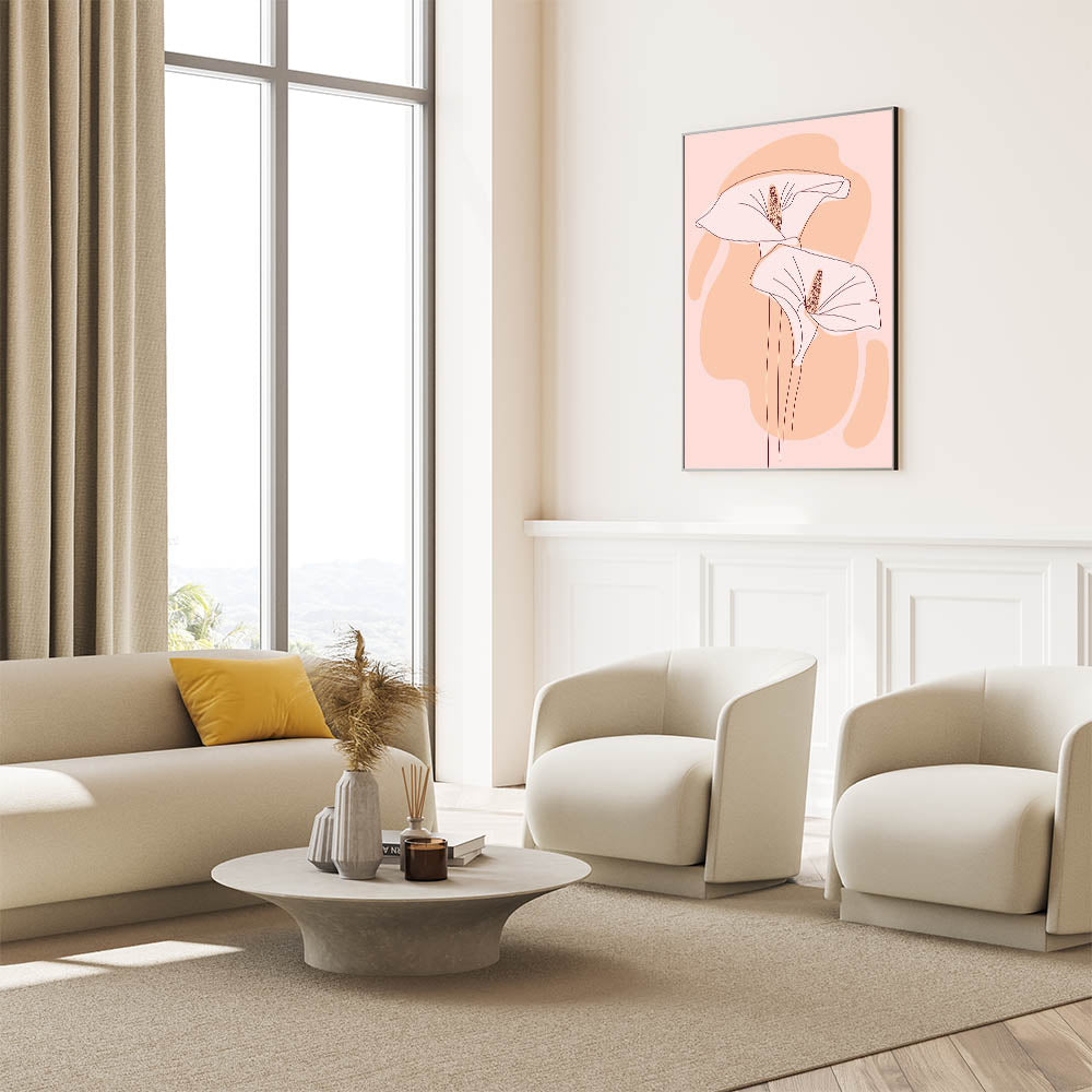 Infuse your home with a touch of nature's elegance through this soft and serene Bohemian wall art. The minimalist floral design, rendered in delicate pink and peach tones, brings a gentle, calming atmosphere to any space. This boho chic wall hanging is perfect for bedrooms, living rooms, or nurseries, adding a sophisticated yet understated charm to your decor. Its smooth lines and gentle color palette make it a perfect choice for anyone looking to create a serene, natural ambiance.