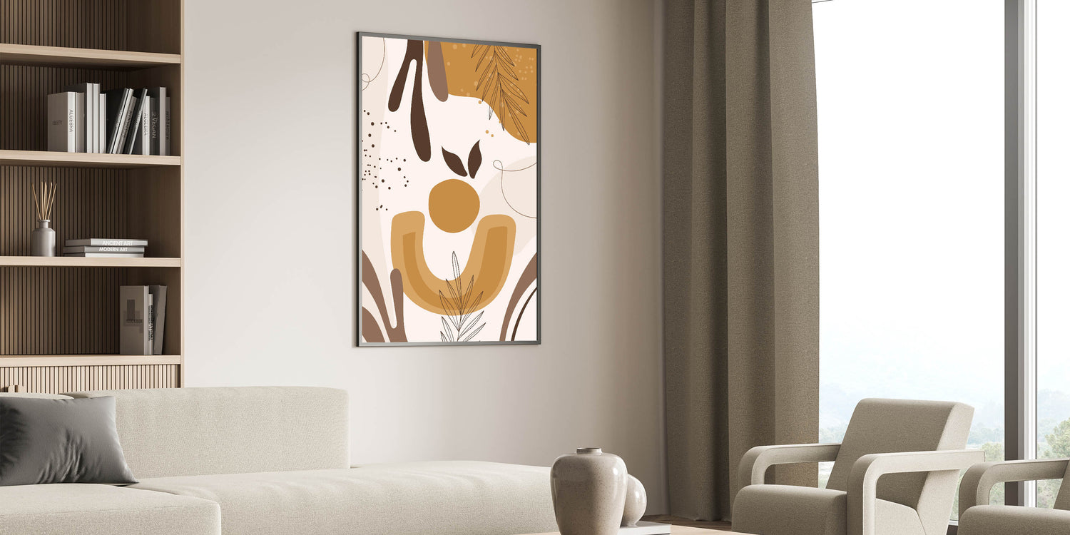 Embrace the warm and earthy tones of this stunning boho chic wall art. Featuring a graceful blend of abstract shapes and delicate linework, this eclectic bohemian decor canvas brings a natural, organic feel to any space. With its neutral shades of brown, beige, and mustard, the design evokes a sense of calm and balance, making it a perfect choice for living rooms, bedrooms, or offices. The subtle botanical elements enhance the overall aesthetic, offering a modern yet timeless piece of art that complements a wide range of interior styles.