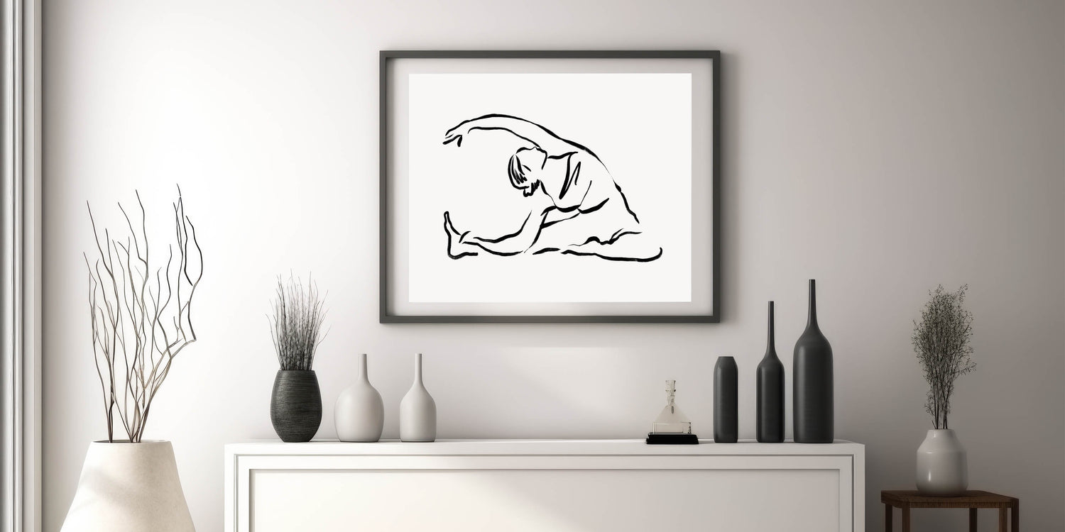 - Minimalist boho wall decor with an elegant yoga pose, perfect for creating a calming atmosphere.