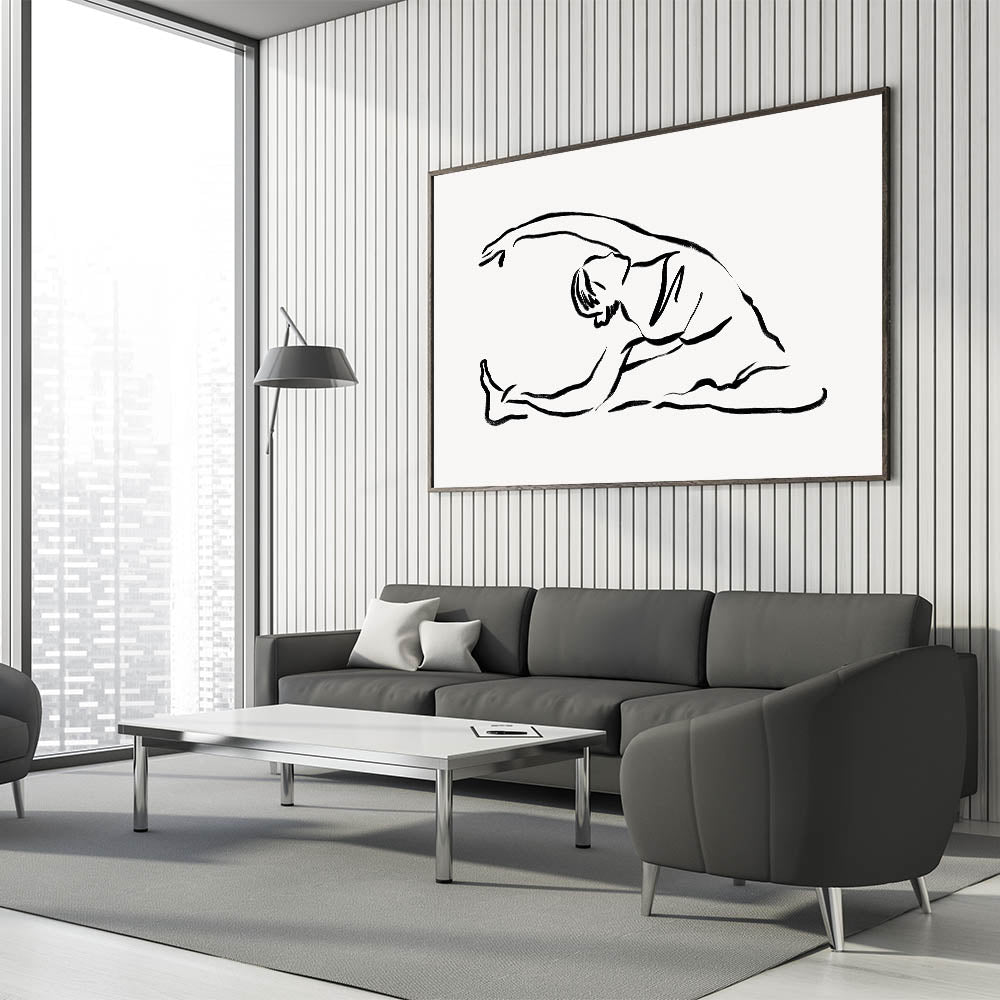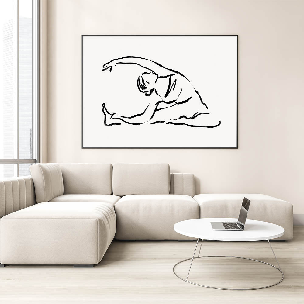 Elevate the tranquility of your home with this stunning bohemian wall art, featuring a minimalist line drawing of a graceful figure in a yoga stretch. The flowing black lines capture the essence of calm and balance, making this boho decor canvas a perfect addition to any room where relaxation and mindfulness are key. Whether you're enhancing your living room, bedroom, or a personal retreat, this artistic piece brings a peaceful ambiance to your interior.