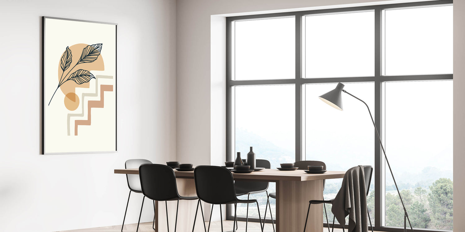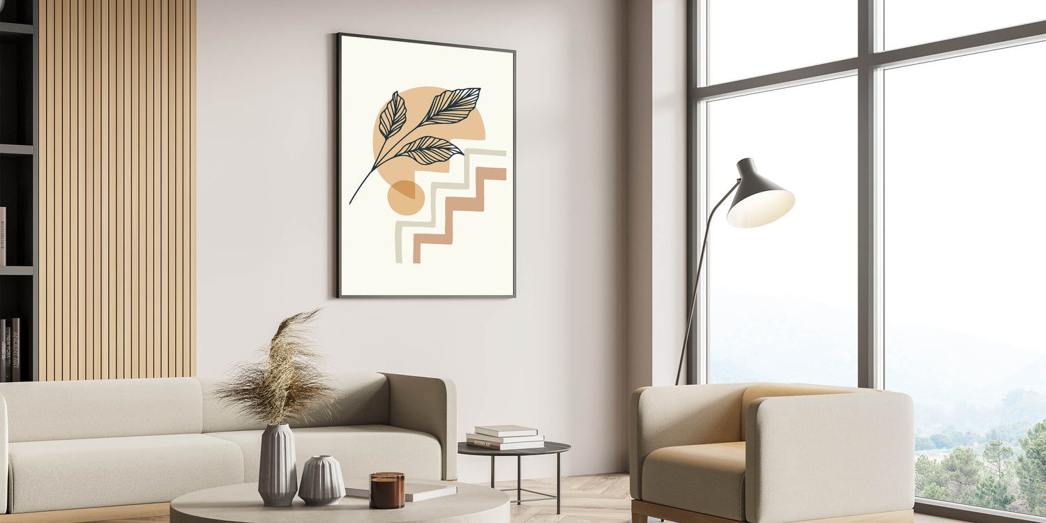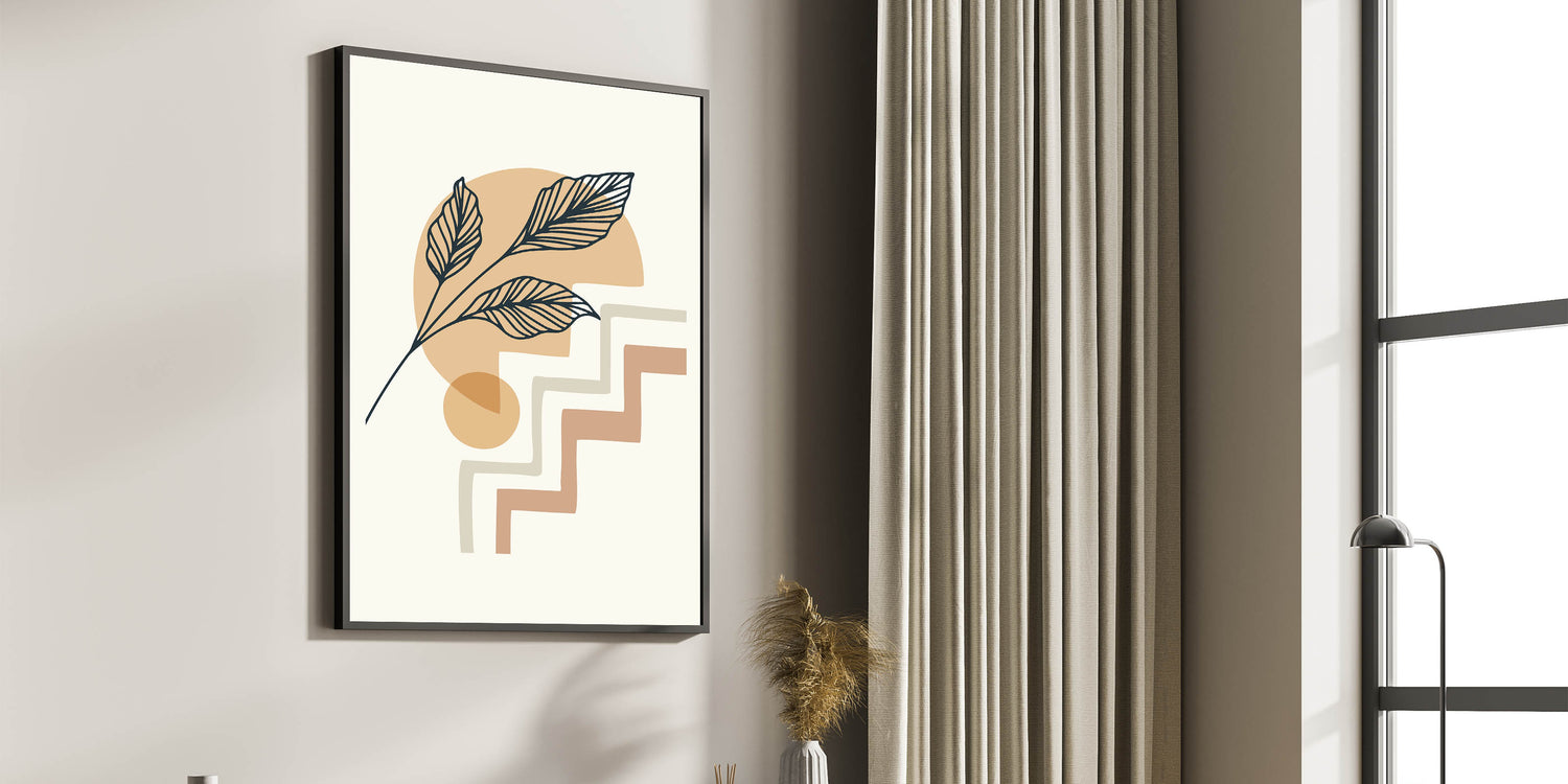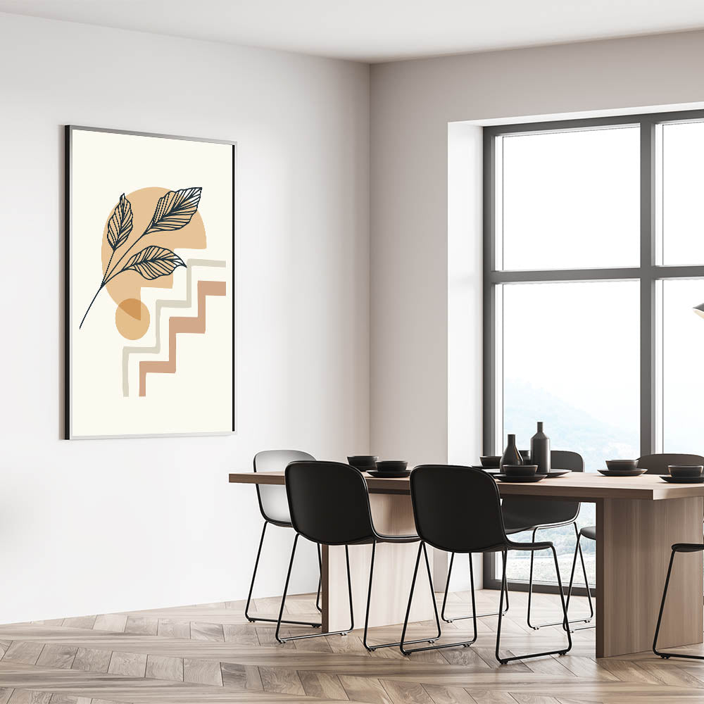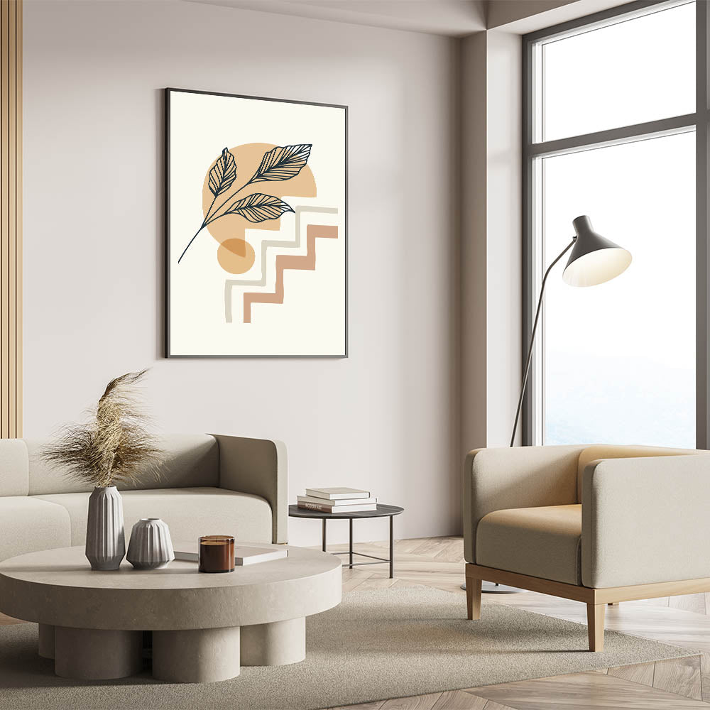 Elevate your home decor with this exquisite Bohemian wall art, featuring a minimalist design of delicate leaves and abstract geometric shapes. The earthy tones and soft lines make this boho decor canvas perfect for adding a touch of elegance and serenity to any space. Whether you're looking to create a calm and inviting atmosphere in your living room or bedroom, this artistic bohemian style print will transform your interior with its understated charm.