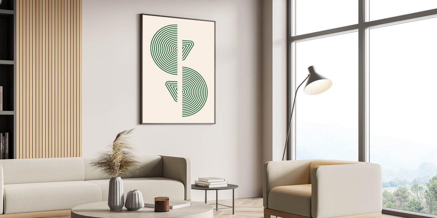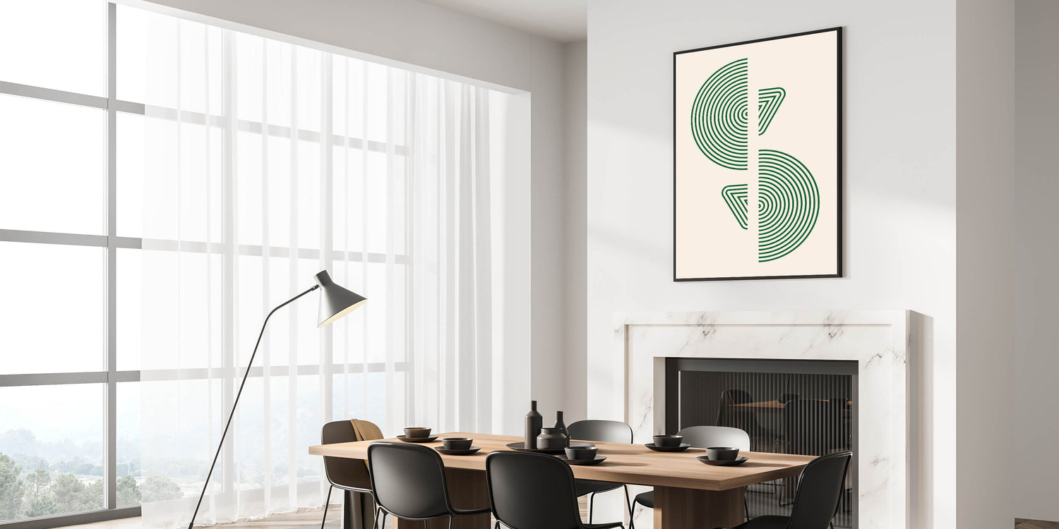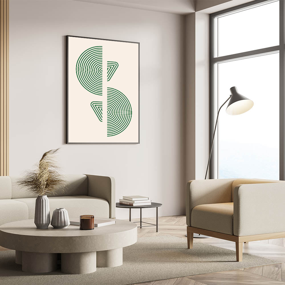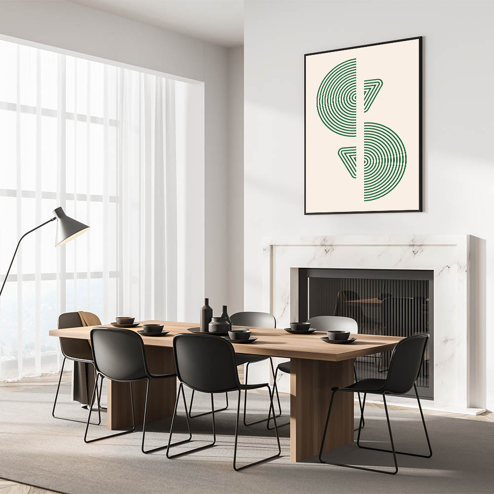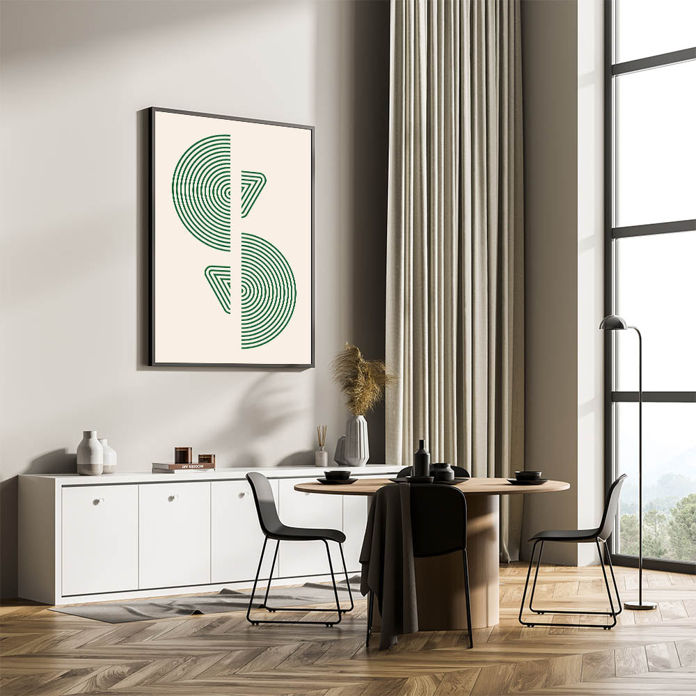 Whether you prefer a framed canvas or acrylic glass, this bohemian artwork adds a touch of elegance to your space. Its minimalist design, combined with the deep green geometric patterns, brings an earthy and natural vibe to your home, while maintaining a modern bohemian edge. This unique wall decor is perfect for creating a sophisticated yet laid-back atmosphere in any room.