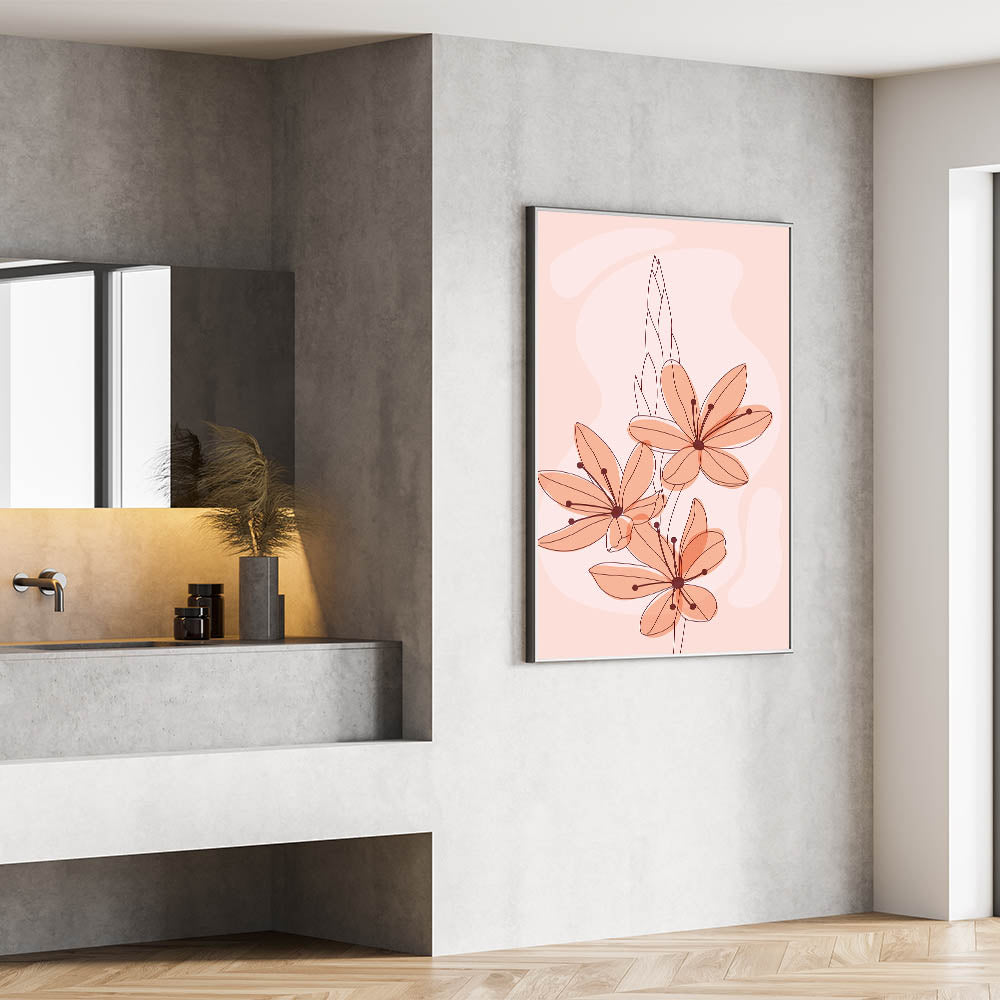 Bring elegance and a touch of nature into your space with this beautiful boho floral wall art. Featuring delicate peach-toned flowers with soft, flowing lines, this design captures the essence of bohemian chic decor. The minimalistic yet elegant design makes it a perfect addition to modern and eclectic spaces, offering a calming and serene aesthetic. Whether placed in a bedroom, living room, or even a nursery, this boho chic canvas adds a gentle warmth and charm to any room.
