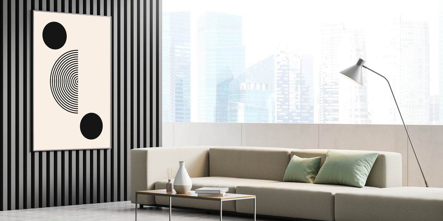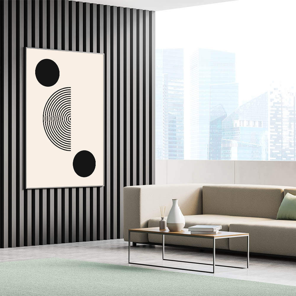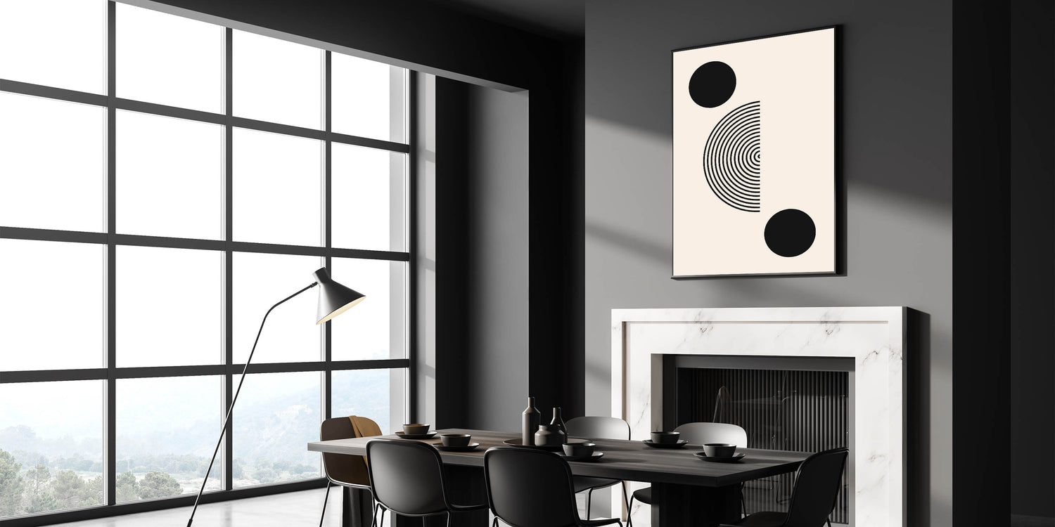 Transform your space with this sleek and modern Boho wall art. Featuring bold black geometric circles and a half-circle concentric design, this minimalist print is the perfect blend of simplicity and elegance. The clean lines and balanced composition make this piece ideal for both modern and bohemian interiors, adding a striking yet understated artistic element to your space.