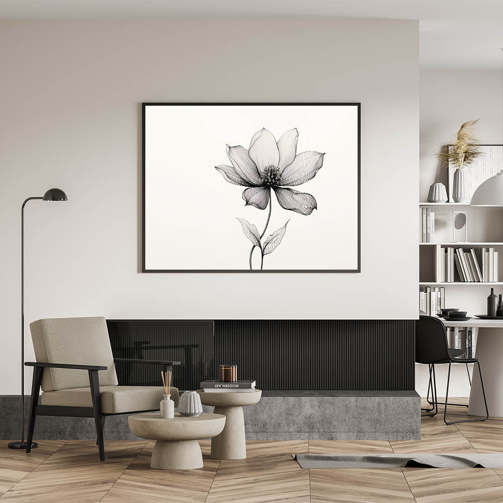 Introduce a touch of elegance and nature into your home with this bohemian wall art, featuring a delicate black and white floral line drawing. The intricately drawn petals and soft lines create a sense of calm and beauty, making this boho decor canvas a perfect addition to any room in your home. Whether displayed in a living room, bedroom, or workspace, this art piece adds a serene and artistic charm to your walls.
