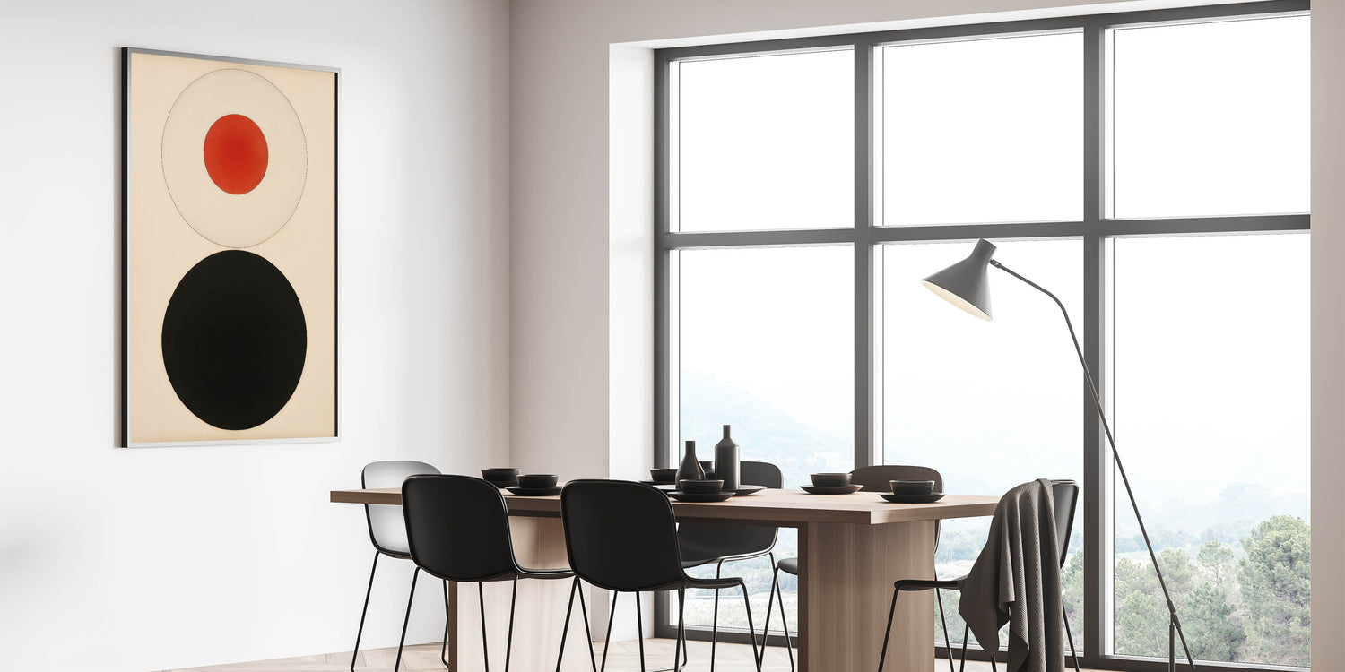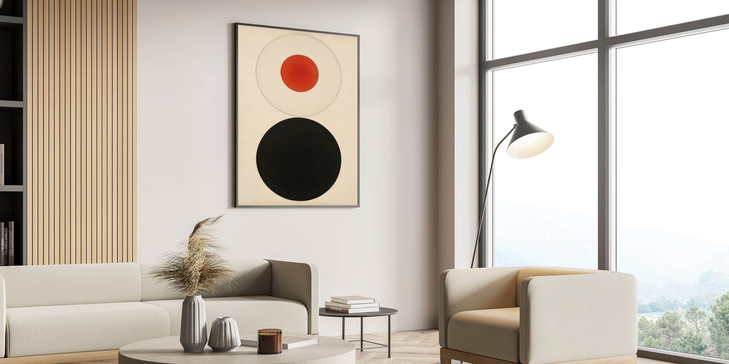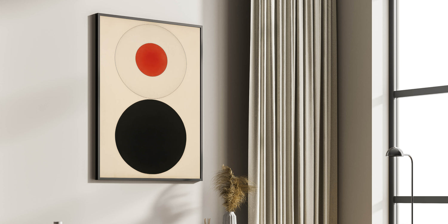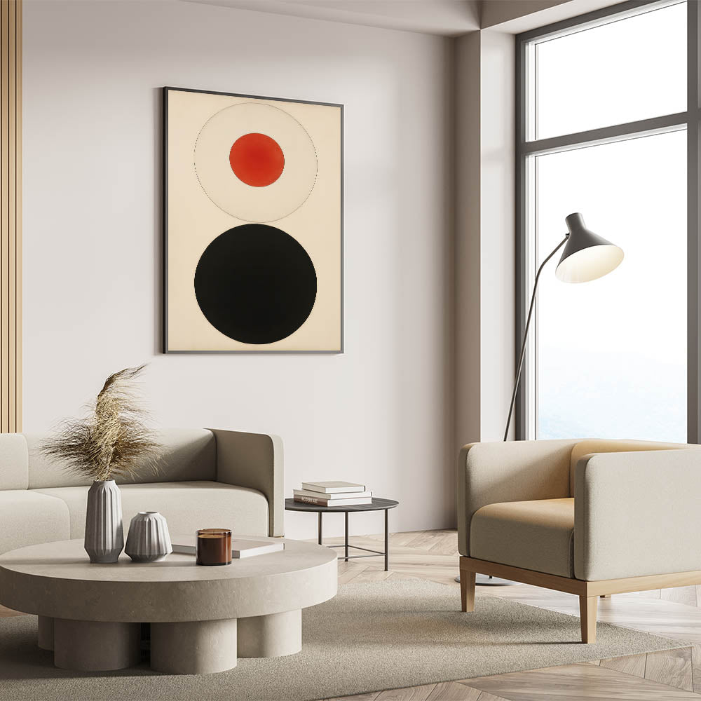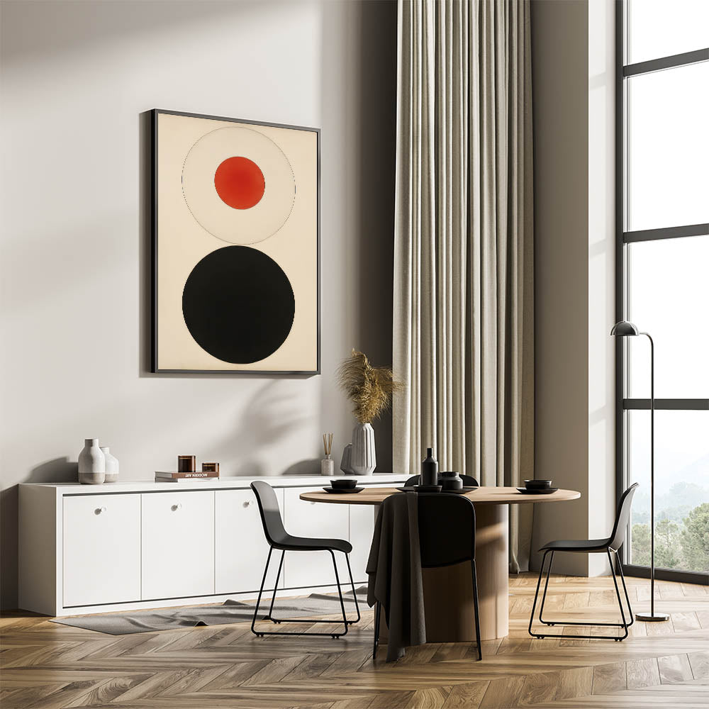 Bold Minimalist Circle Art - Red and Black Geometric Wall Canvas Decor