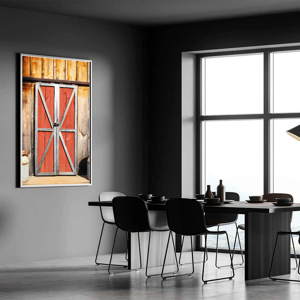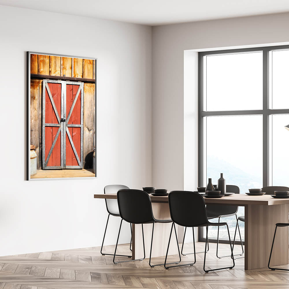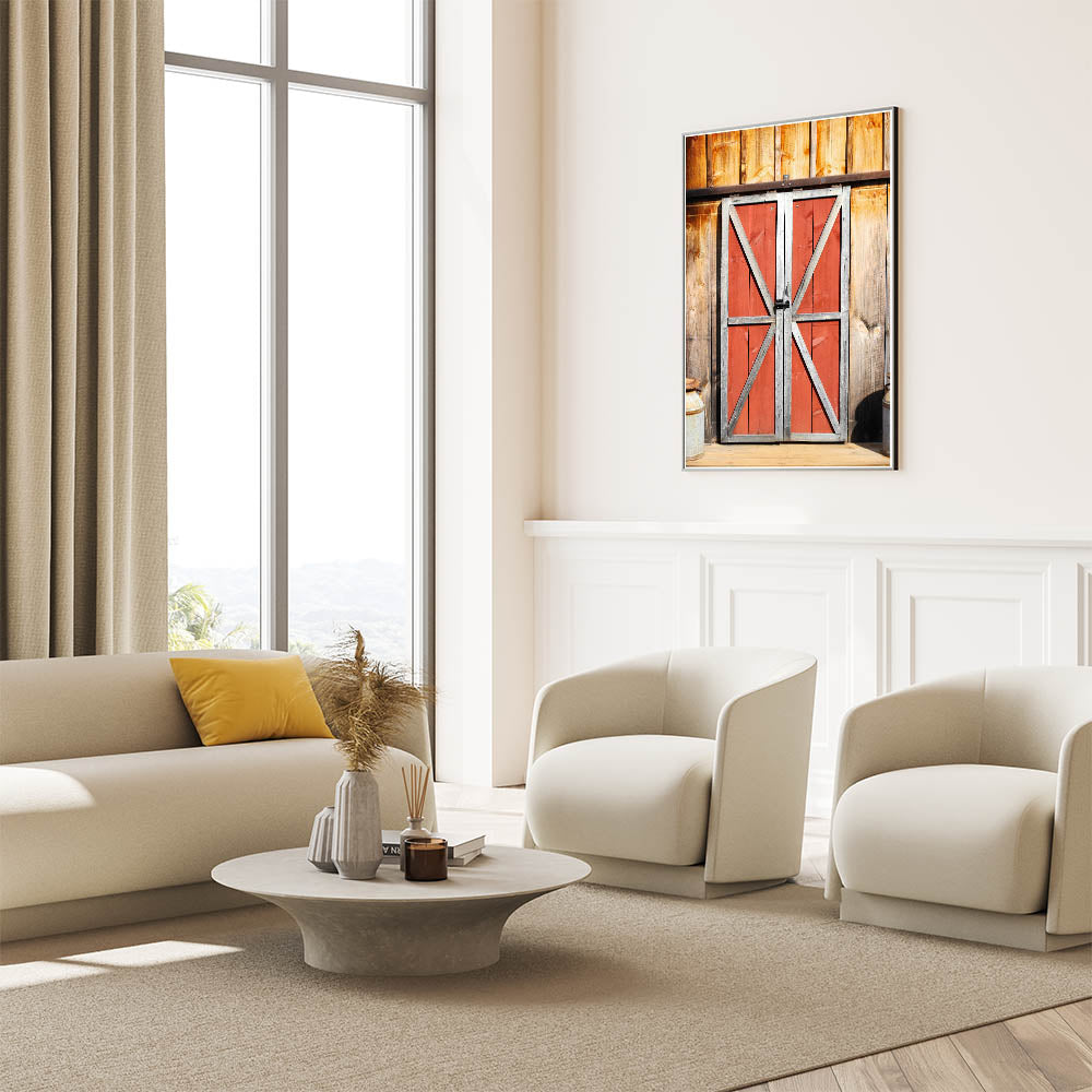 Bold Red Barn Doors - Rustic Farmhouse Wall Art