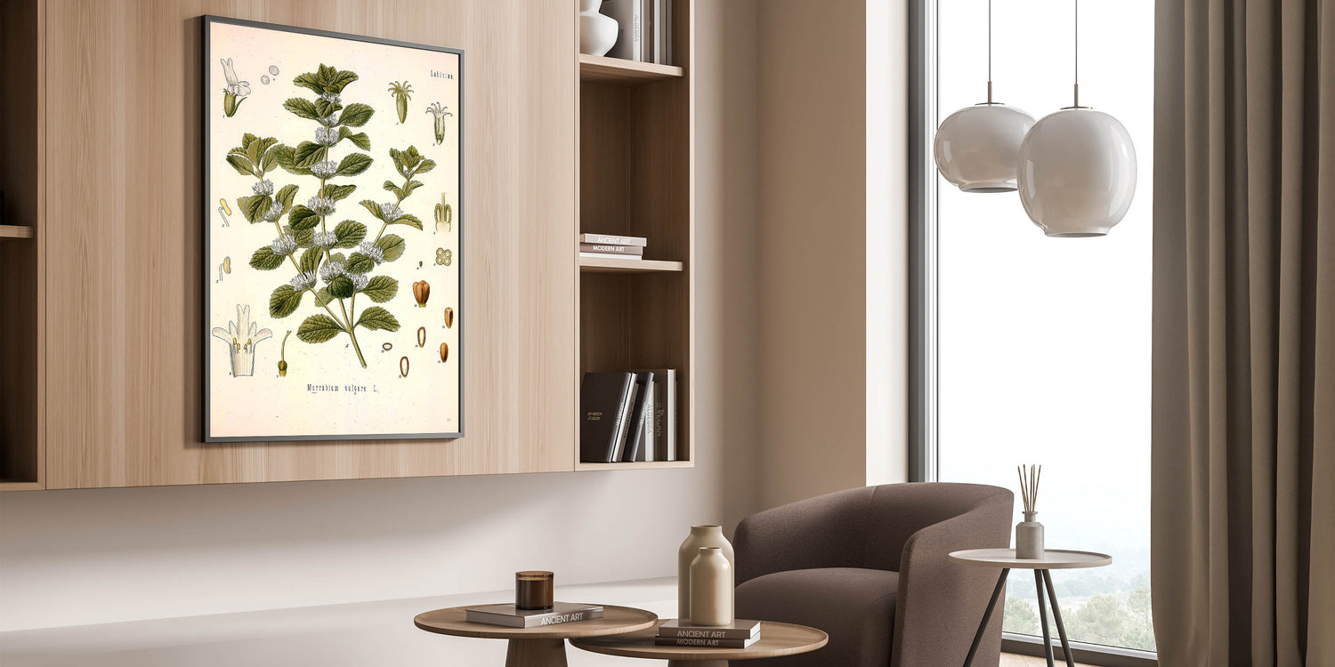 Enhance your space with this exquisite Botanical Art Print, featuring a beautiful vintage botanical illustration of Marrubium vulgare (white horehound). This timeless artwork captures the elegance of nature and is perfect for those who love nature-inspired decor and vintage art style.
