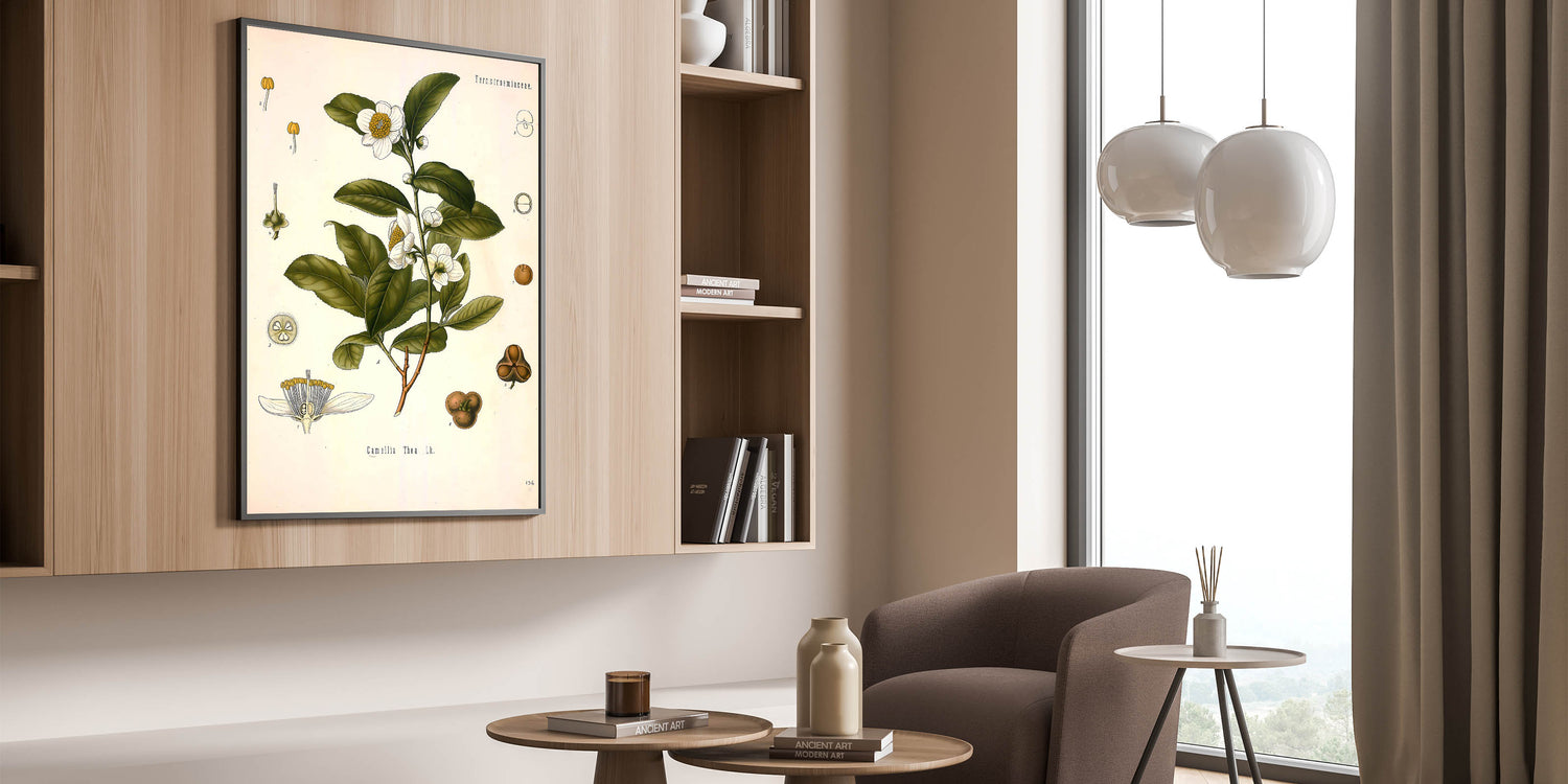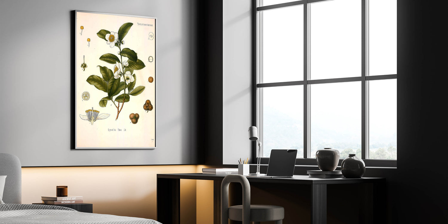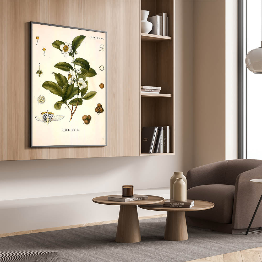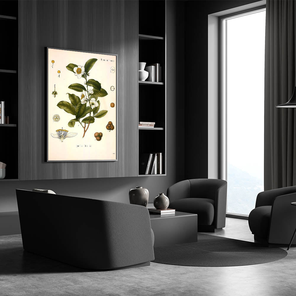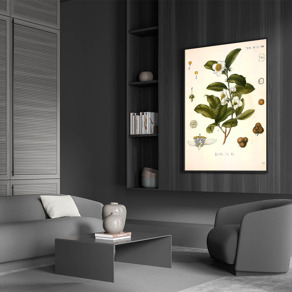 Add a touch of nature’s beauty to your home with this vintage botanical illustration of Camellia Thea, the plant known for producing tea leaves. This exquisite botanical wall art blends vintage art style with nature-inspired decor, making it the perfect addition to any space. The delicate white flowers and lush green leaves are beautifully captured, offering timeless elegance to your home.