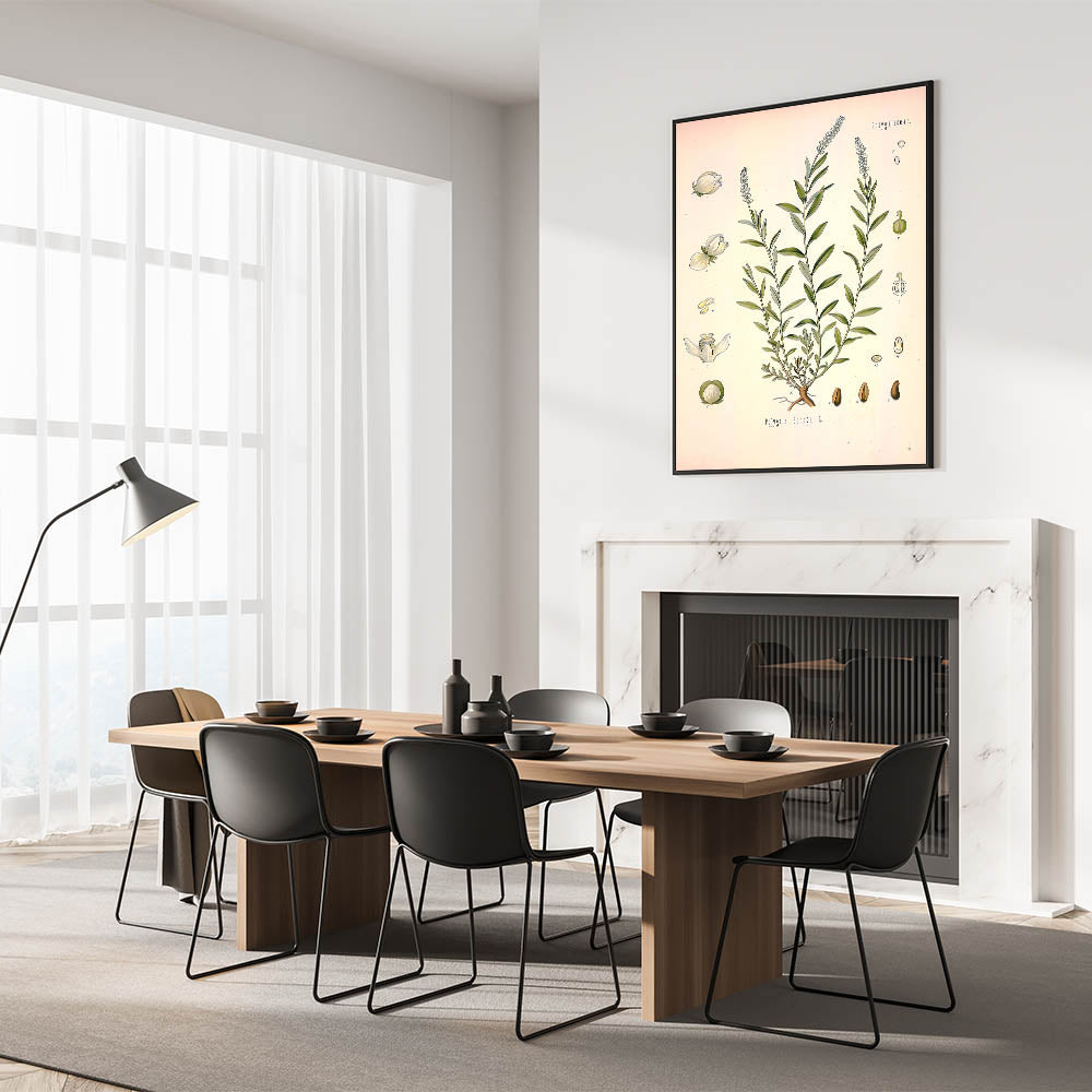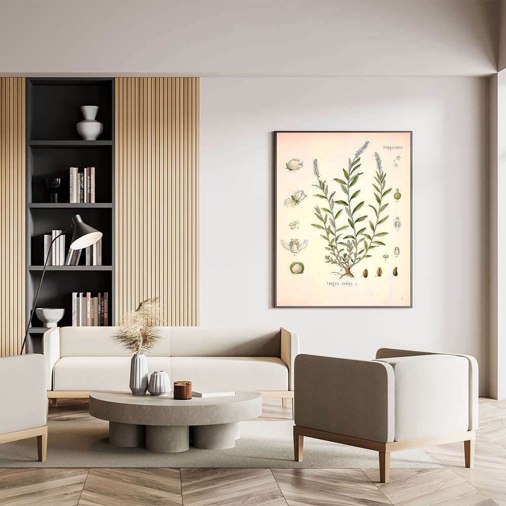 The soft greens of the leaves and the elegant flower structures bring a calming, natural vibe to your space. Whether you display it in your living room, office, or herbalist’s nook, this botanical illustration art adds sophistication and charm to any decor.