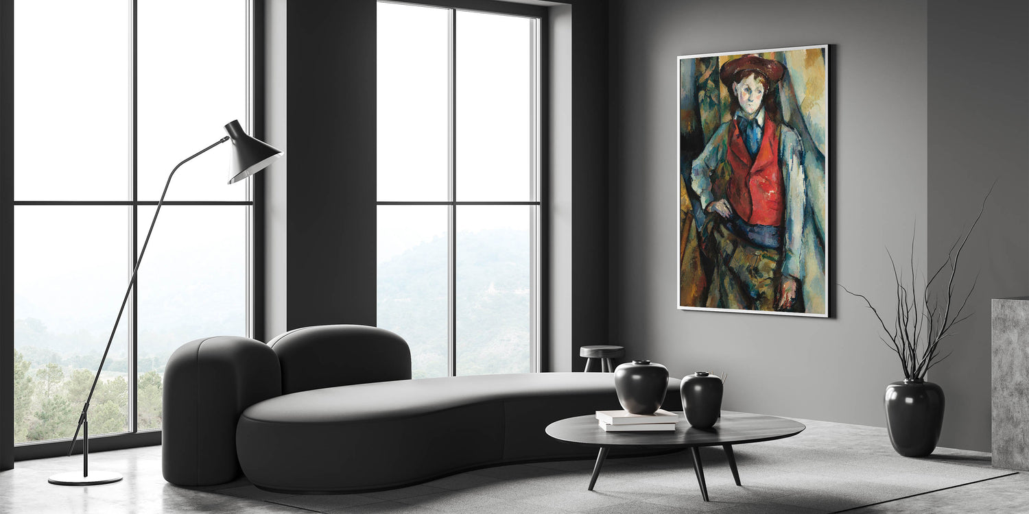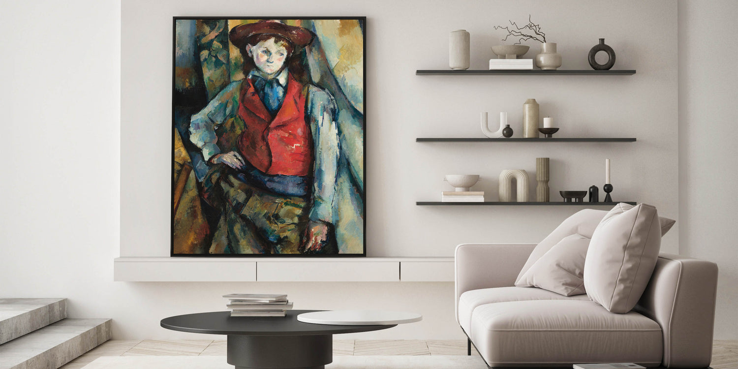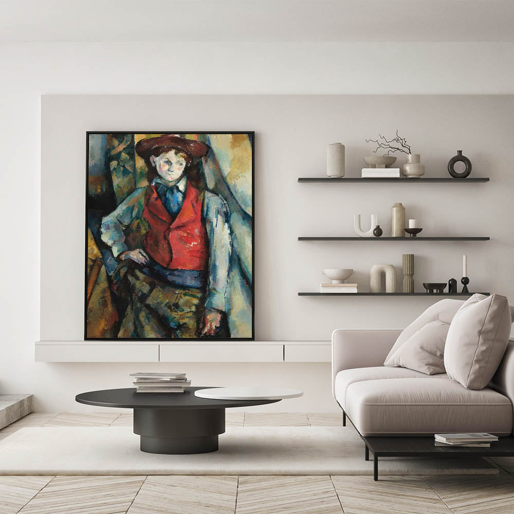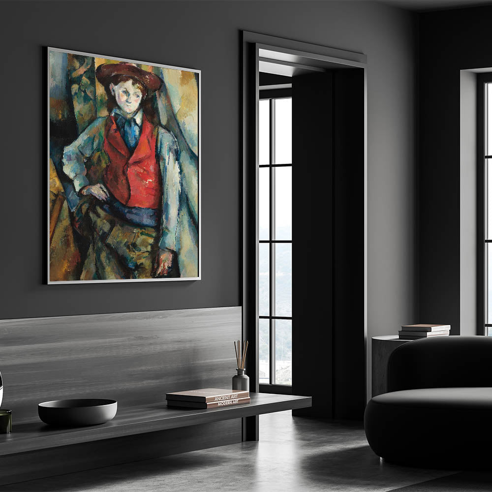 Bring timeless artistry into your space with "Boy in a Red Waistcoat," an iconic portrait by Paul Cézanne. This captivating painting depicts a young boy in a striking red waistcoat, exuding a sense of introspection and confidence. Cézanne’s masterful brushstrokes and bold use of color create depth and texture, making this piece a powerful addition to any art lover’s collection. Perfect for those who appreciate classic art, this modern wall piece brings warmth, character, and sophistication to any room.
