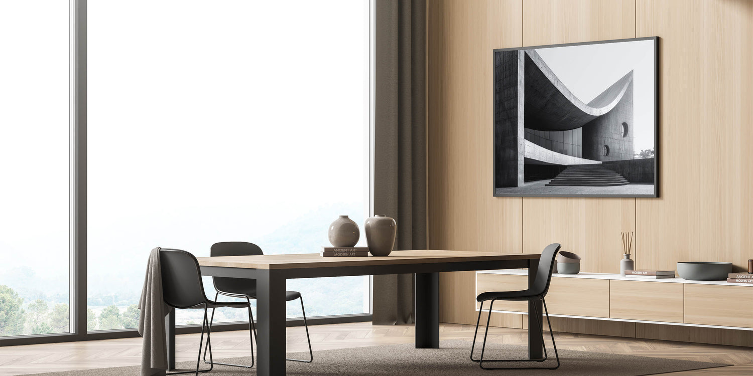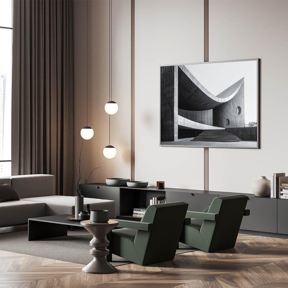 Bring a modern architectural masterpiece into your home or office with this Brutalist wall art, combining elegance and raw industrial charm.