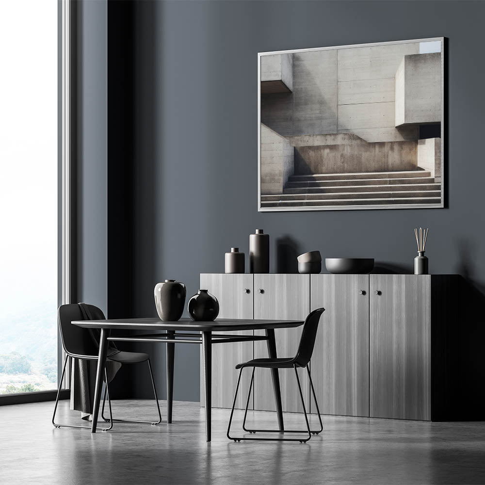 Transform your home or office with this striking Brutalist wall art, blending modern industrial style with minimalist architectural elegance.