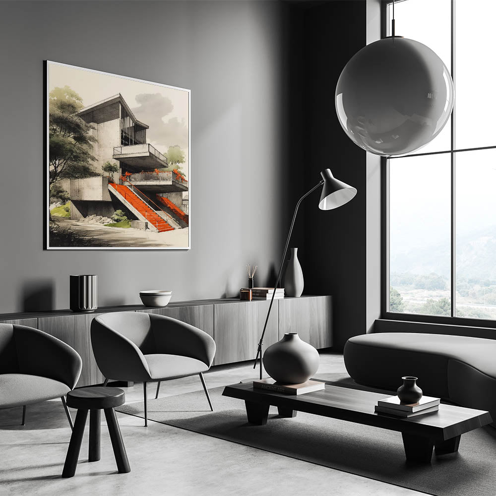 This Brutalist wall art is a versatile piece that transforms any space into a modern sanctuary. Whether displayed in your living room, office, or study, it’s sure to evoke conversations and elevate your interior style. Bring a touch of brutalism into your decor with this unique geometric art print.