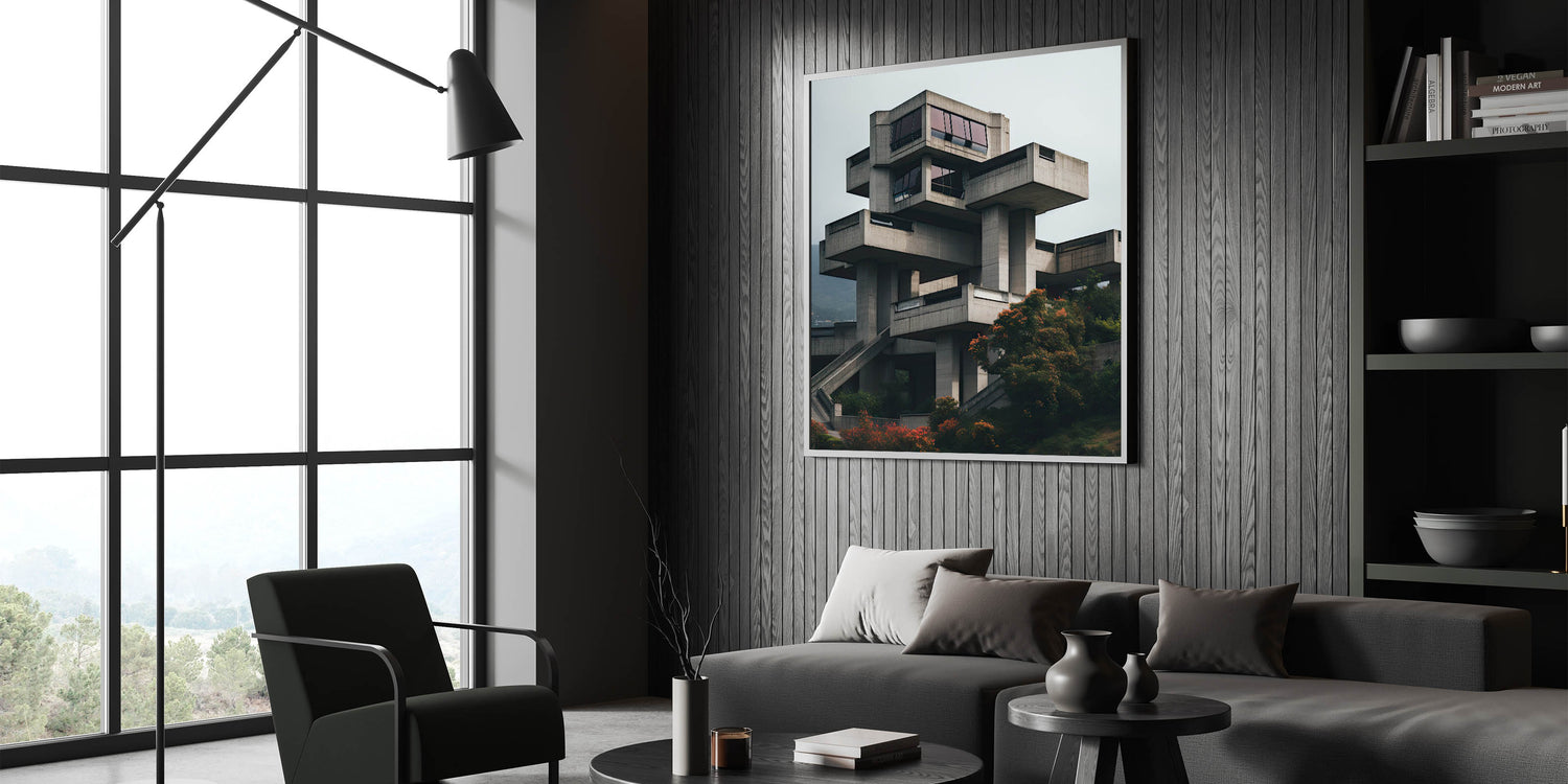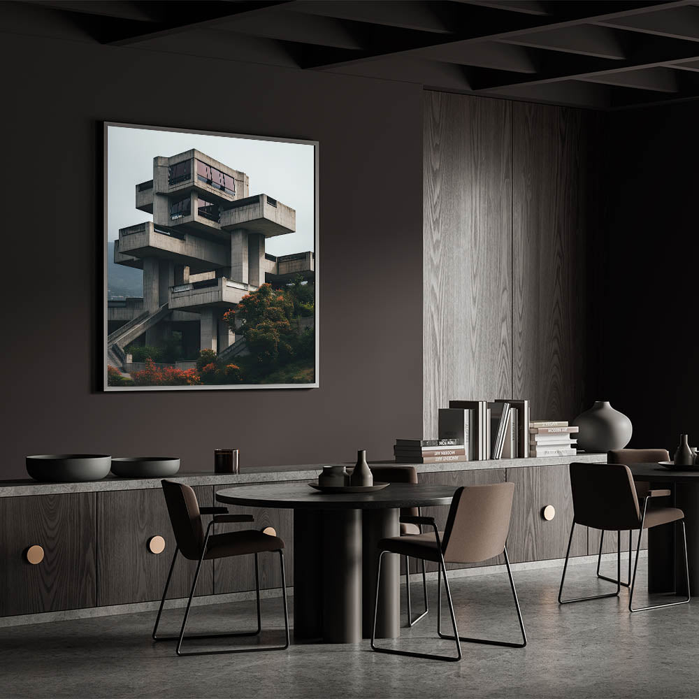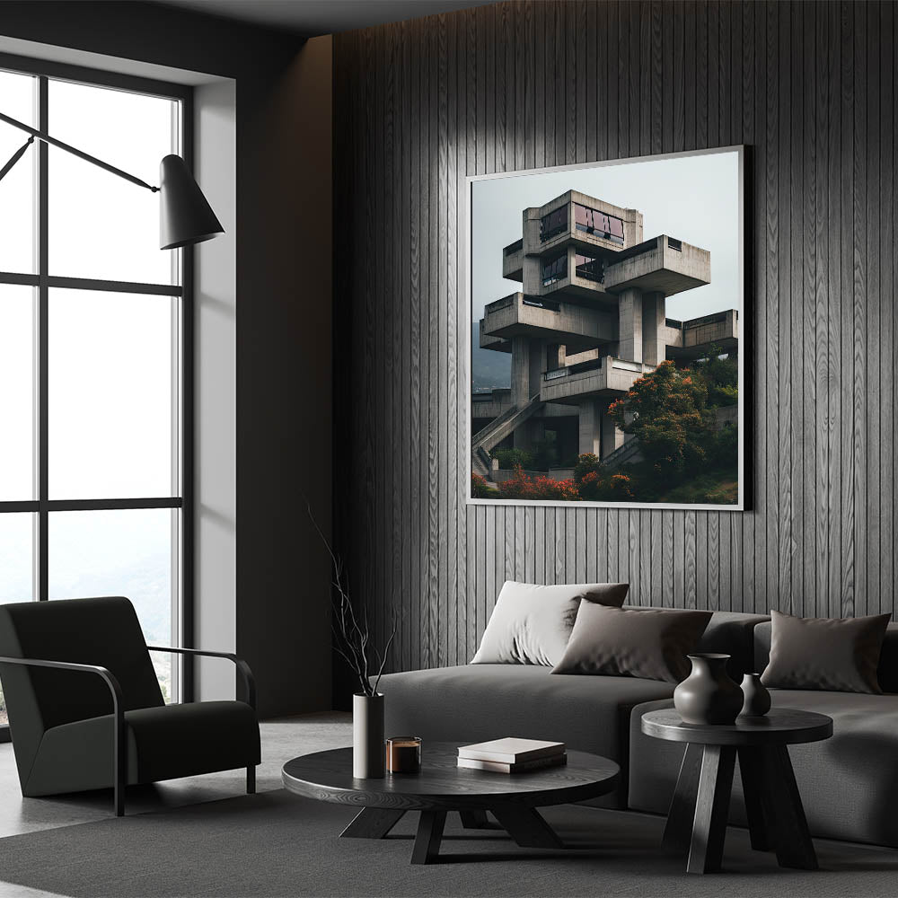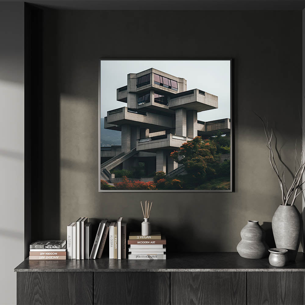 Elevate your living or workspace with this powerful piece of Brutalist wall art, featuring bold forms that emphasize the raw beauty of concrete. Whether displayed in residential or professional settings, this art is sure to be a conversation starter.