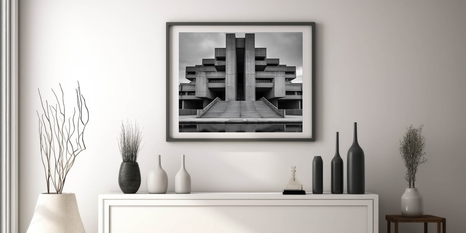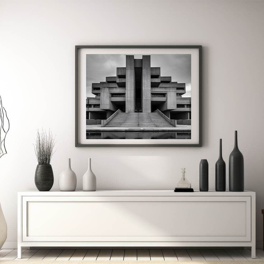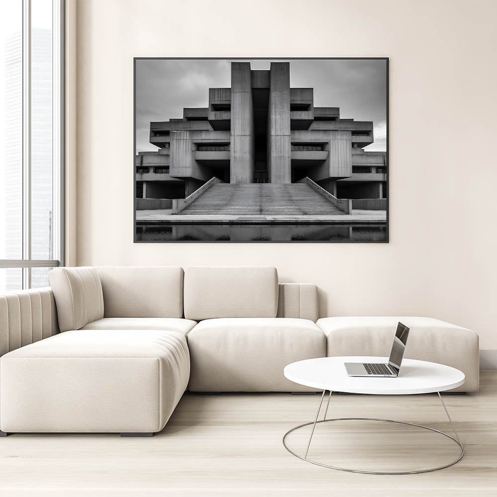 Bring the commanding presence of Brutalist architecture into your space with this powerful Brutalist Wall Art. Featuring a monumental concrete structure, this print captures the essence of modern industrial design, blending clean geometric lines with raw concrete textures. The structure's imposing form embodies the Brutalist aesthetic, ideal for lovers of minimalist and mid-century modern decor. The bold architectural style is designed to inspire, making it a perfect fit for those who appreciate strong, geometric influences in their space.