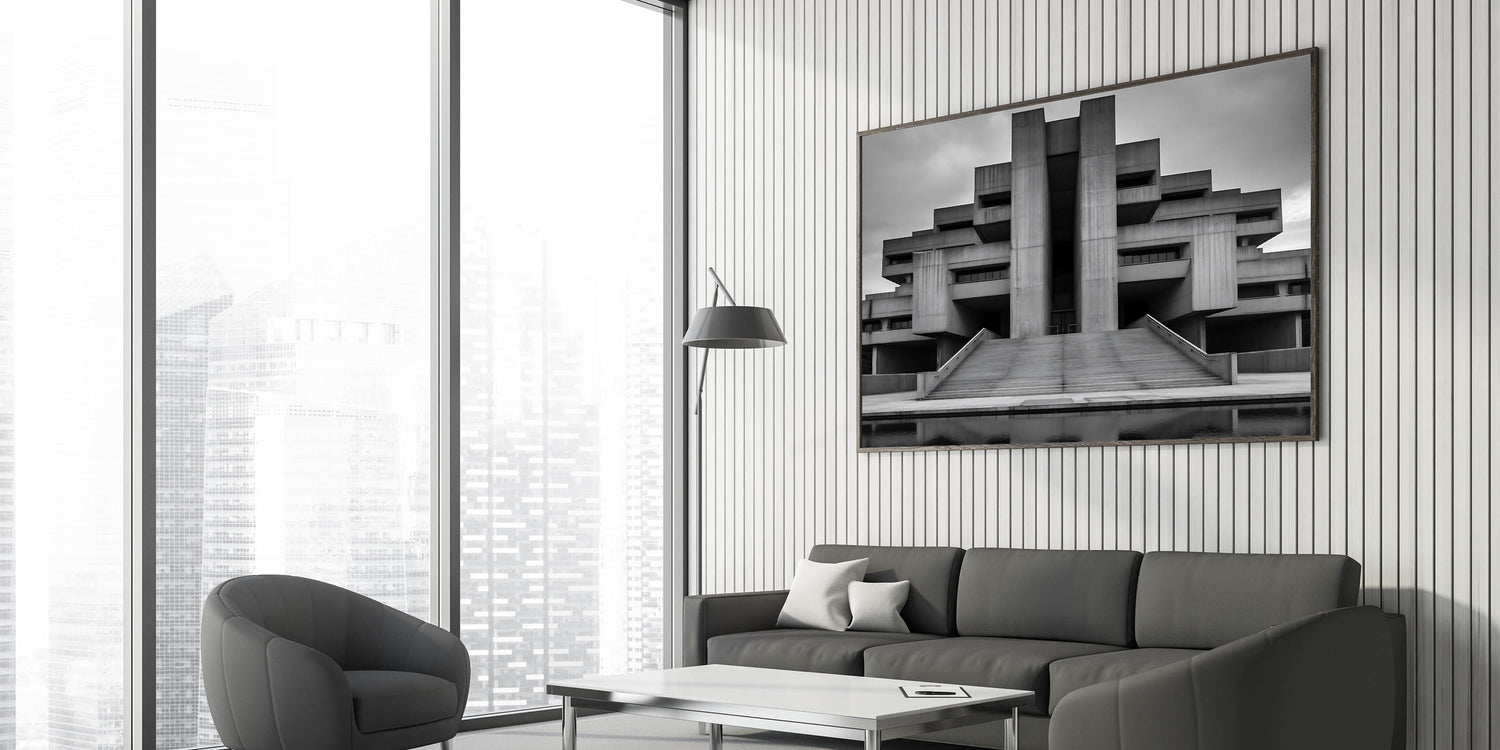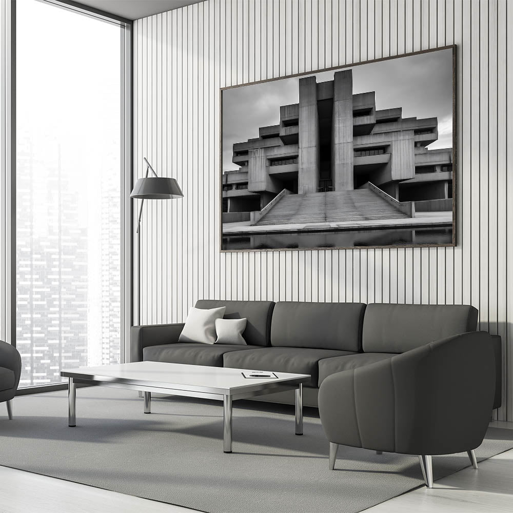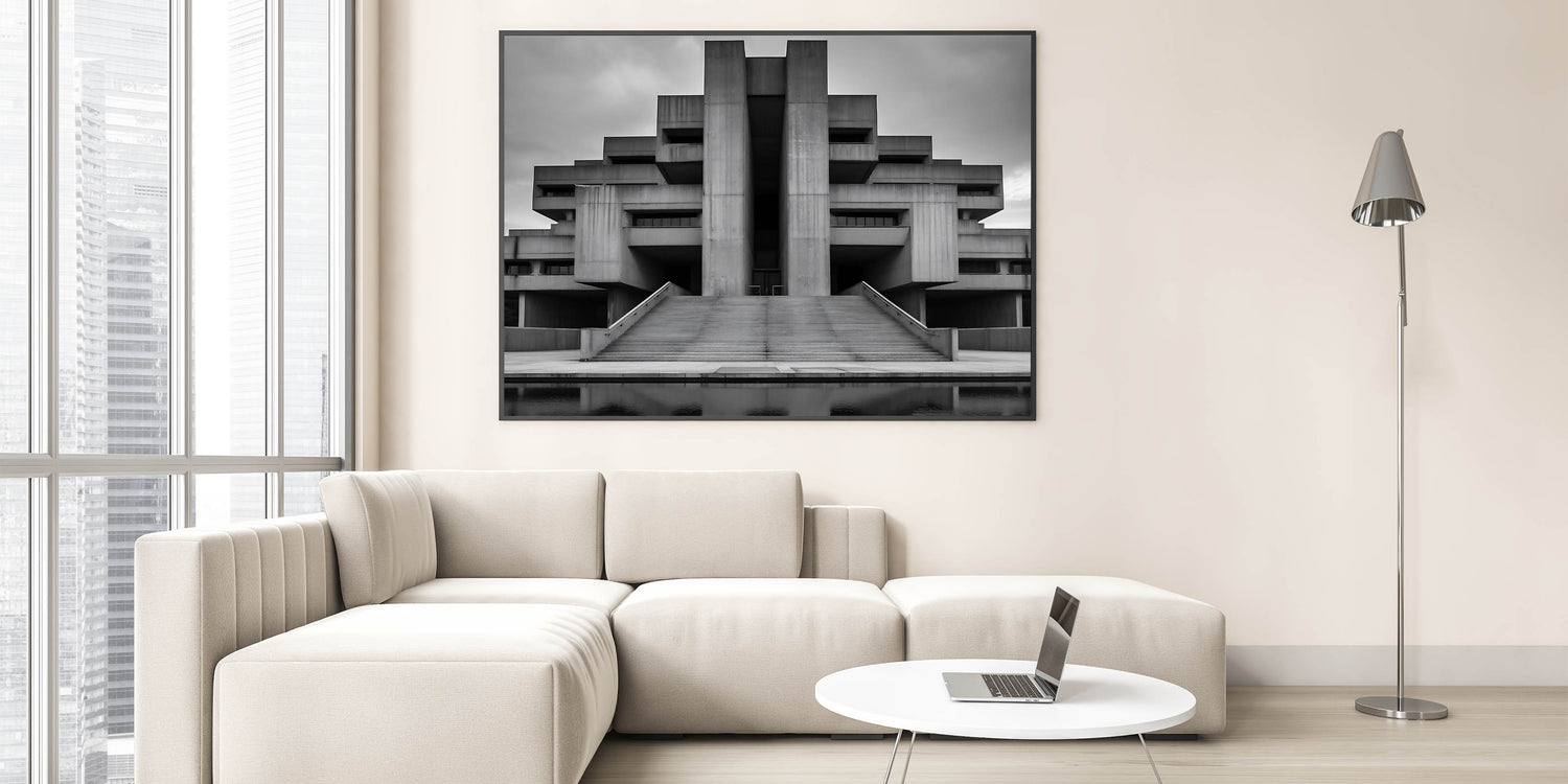 Bring the commanding presence of Brutalist architecture into your space with this powerful Brutalist Wall Art. Featuring a monumental concrete structure, this print captures the essence of modern industrial design, blending clean geometric lines with raw concrete textures. The structure's imposing form embodies the Brutalist aesthetic, ideal for lovers of minimalist and mid-century modern decor. The bold architectural style is designed to inspire, making it a perfect fit for those who appreciate strong, geometric influences in their space.