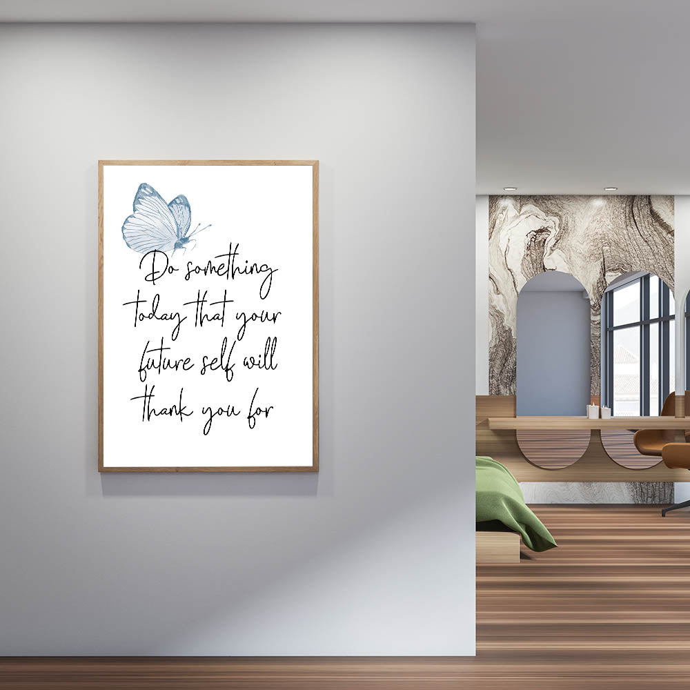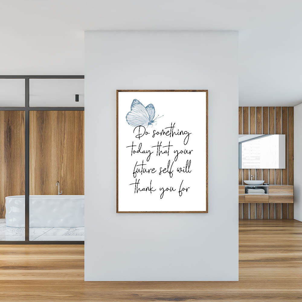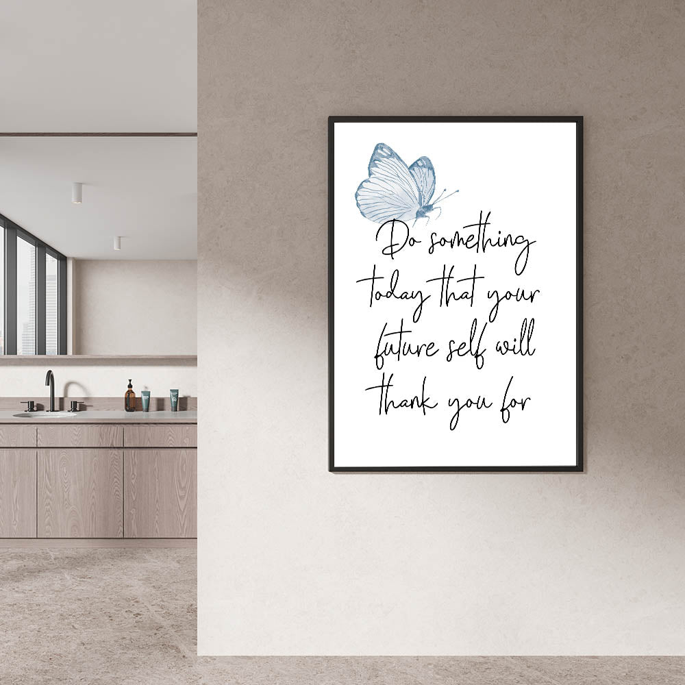 Inspire positivity and growth with this delicate Butterfly Typography Art Print featuring the uplifting quote: "Do something today that your future self will thank you for." The soft blue butterfly paired with elegant script typography creates a serene and motivational piece, perfect for brightening any space. Its minimalist design makes it a versatile choice for modern and contemporary decor.