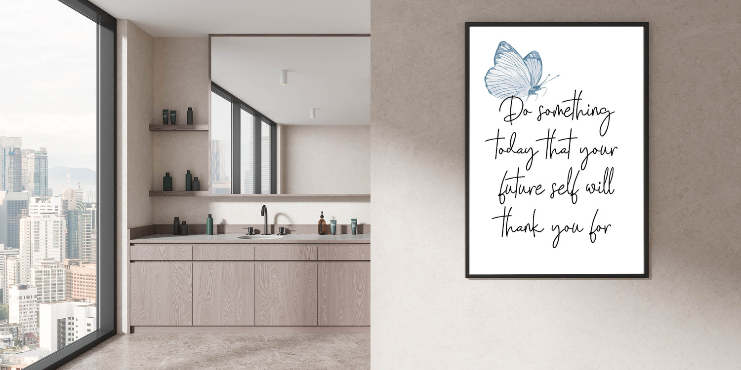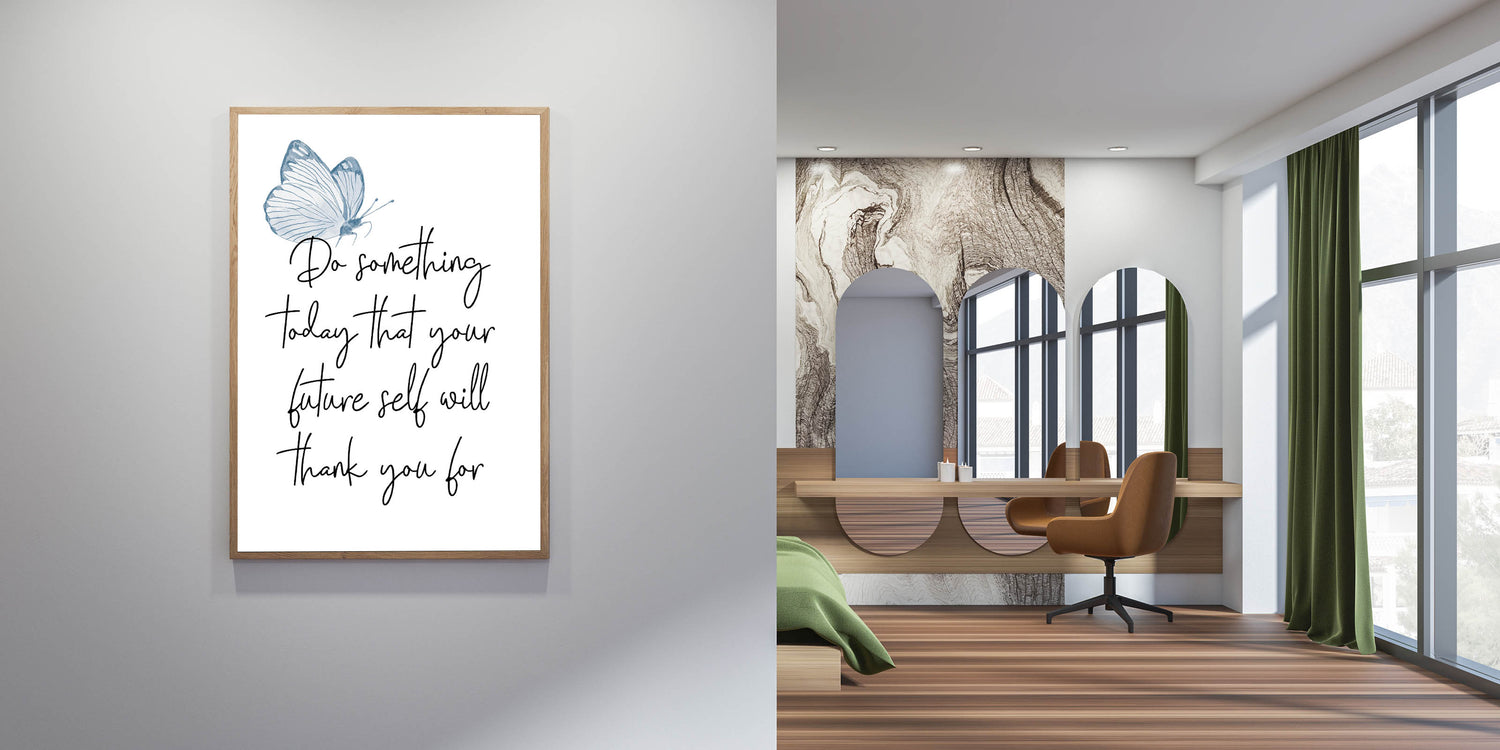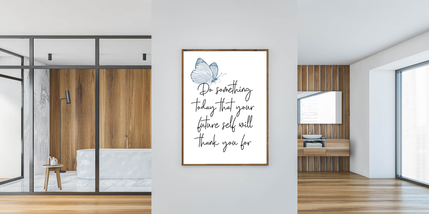 Inspire positivity and growth with this delicate Butterfly Typography Art Print featuring the uplifting quote: "Do something today that your future self will thank you for." The soft blue butterfly paired with elegant script typography creates a serene and motivational piece, perfect for brightening any space. Its minimalist design makes it a versatile choice for modern and contemporary decor.