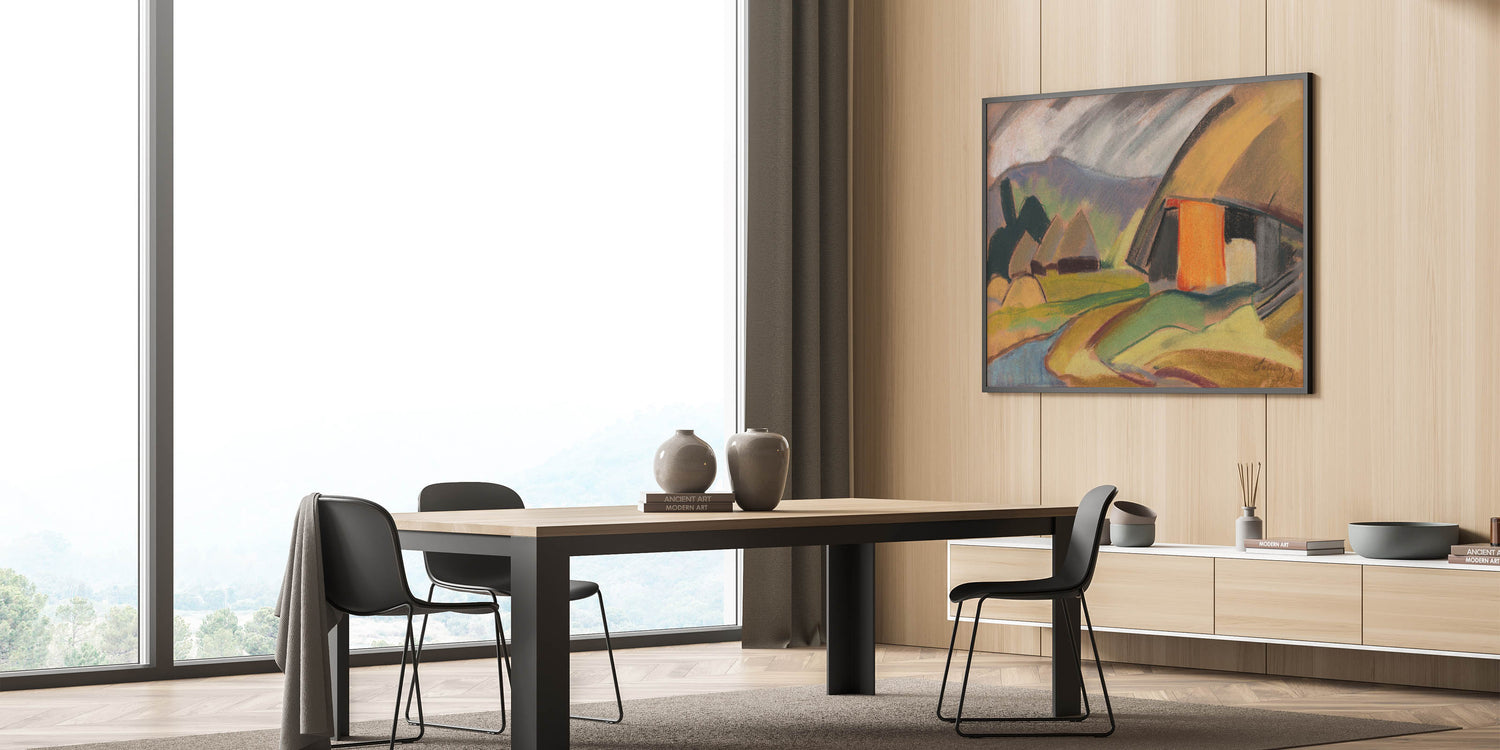 Celebrate the beauty of simplicity and the charm of nature with "By the Village." This timeless artwork is the perfect way to enhance your space with stylish, unique modern art that speaks to your refined taste.