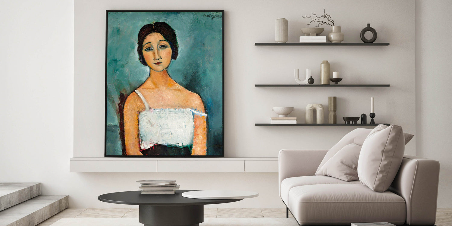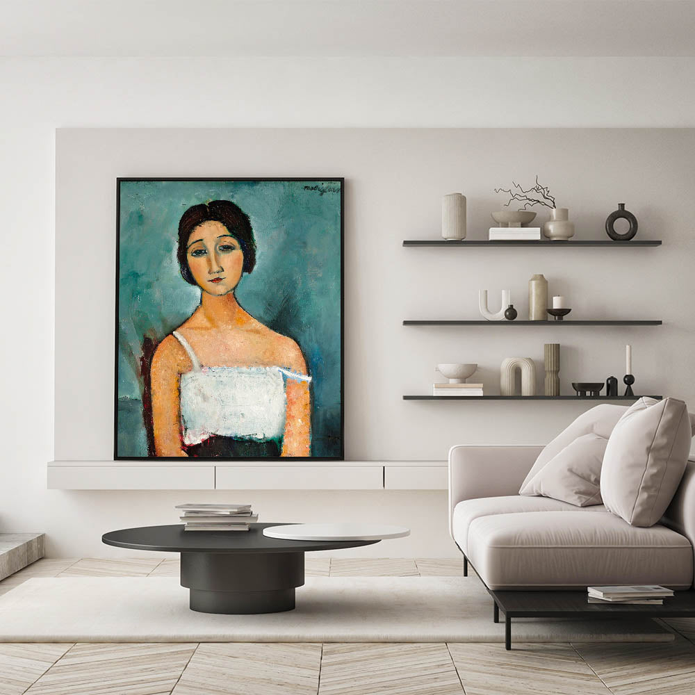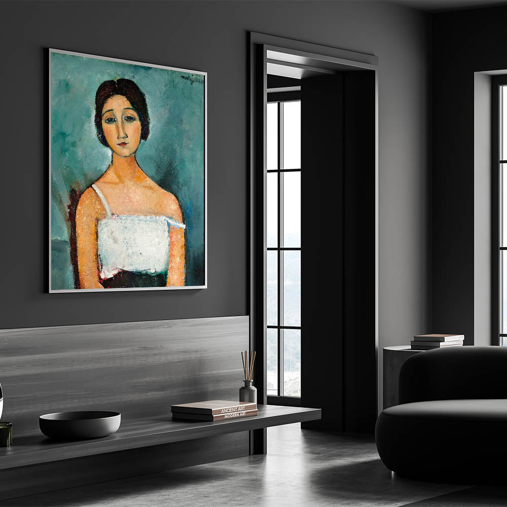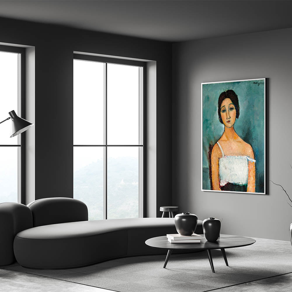 Enhance your space with "Christina," a timeless modern wall art piece that captures the elegance and emotion of portraiture in abstract modern art. Inspired by Amedeo Modigliani’s iconic style, this artwork features soft, muted tones and expressive detailing, making it a perfect addition to minimalist modern decor.