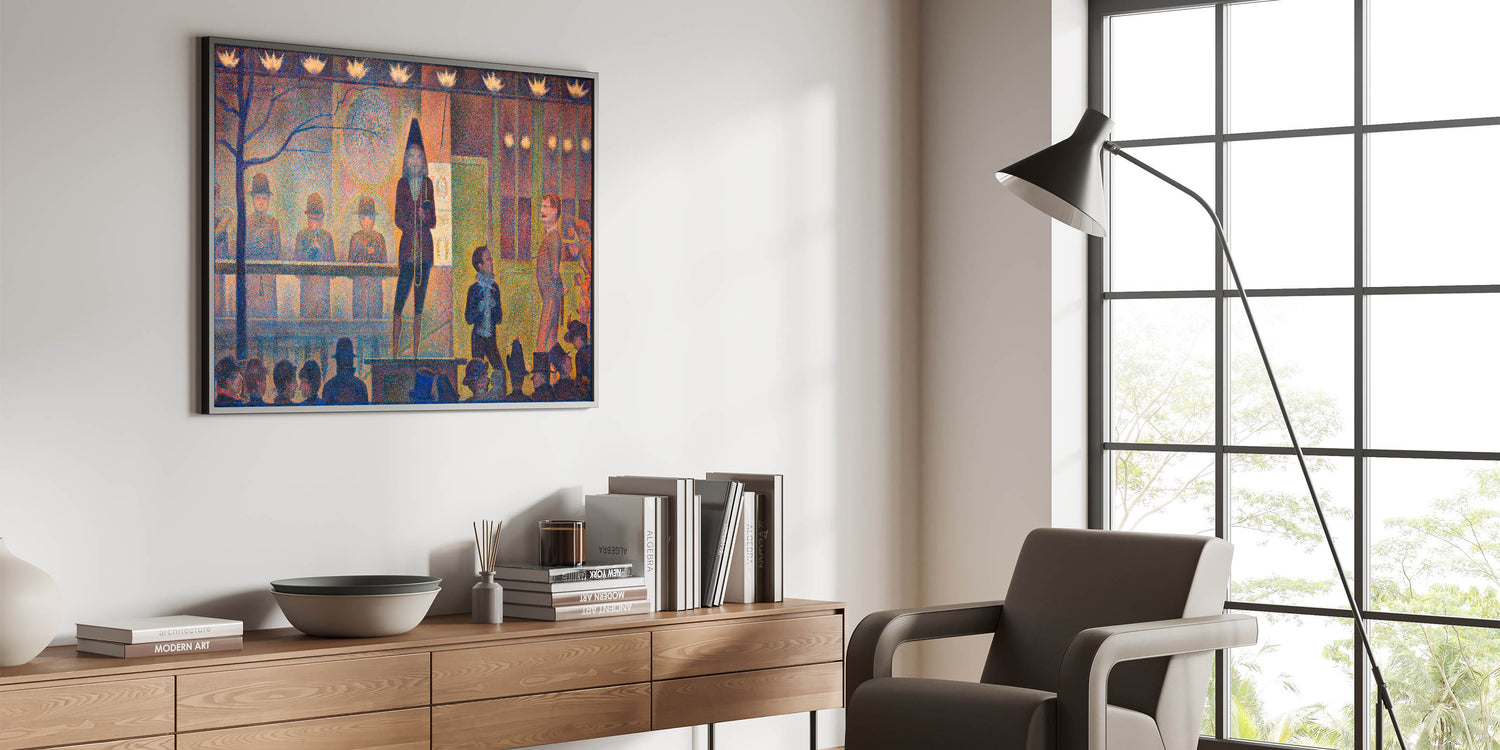 - High-quality reproduction of Georges Seurat’s "Circus Sideshow"