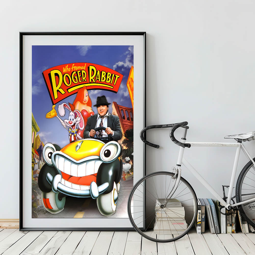 Celebrate one of the most unique animated films ever made with this Who Framed Roger Rabbit poster, an essential piece for fans of animation and film history.A perfect addition to any movie lover’s collection, especially fans of retro animation, 80s cartoons, or Timeless film art.