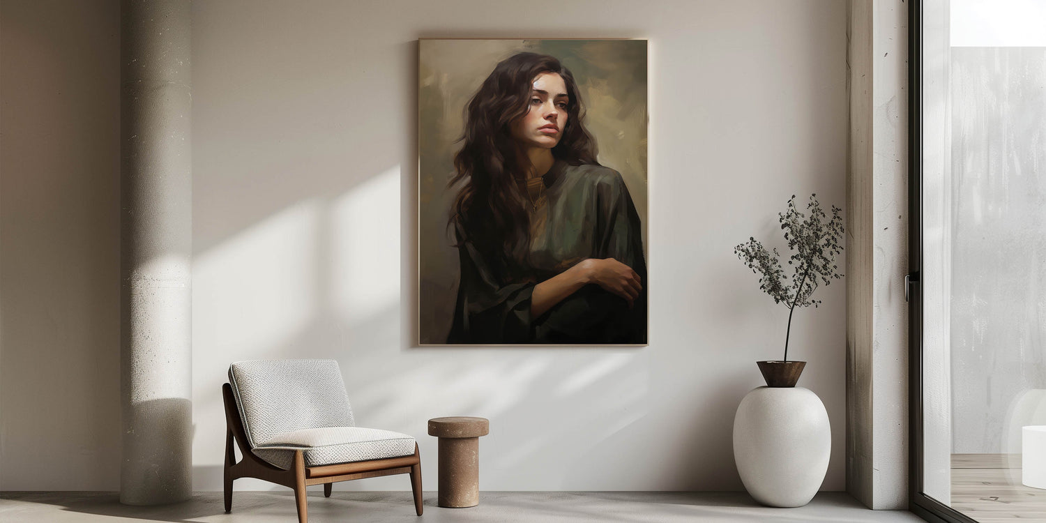 Classic Portrait Artwork - Timeless Woman in Deep Tones Wall Art