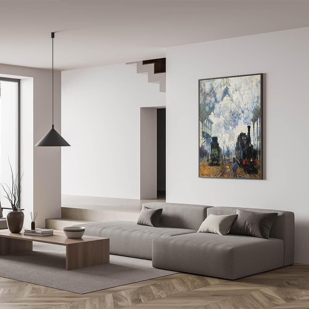 Step into the bustling atmosphere of a Parisian train station with Arrival of the Normandy Train by Claude Monet. Painted in 1877, this Impressionist masterpiece captures the industrial energy of the train station with billowing clouds of steam, intricate ironwork, and the vibrant movement of the crowd. Monet’s skilled brushstrokes bring depth and dynamism to the scene, making it an ideal piece for those who appreciate the beauty of urban life and historic transportation.