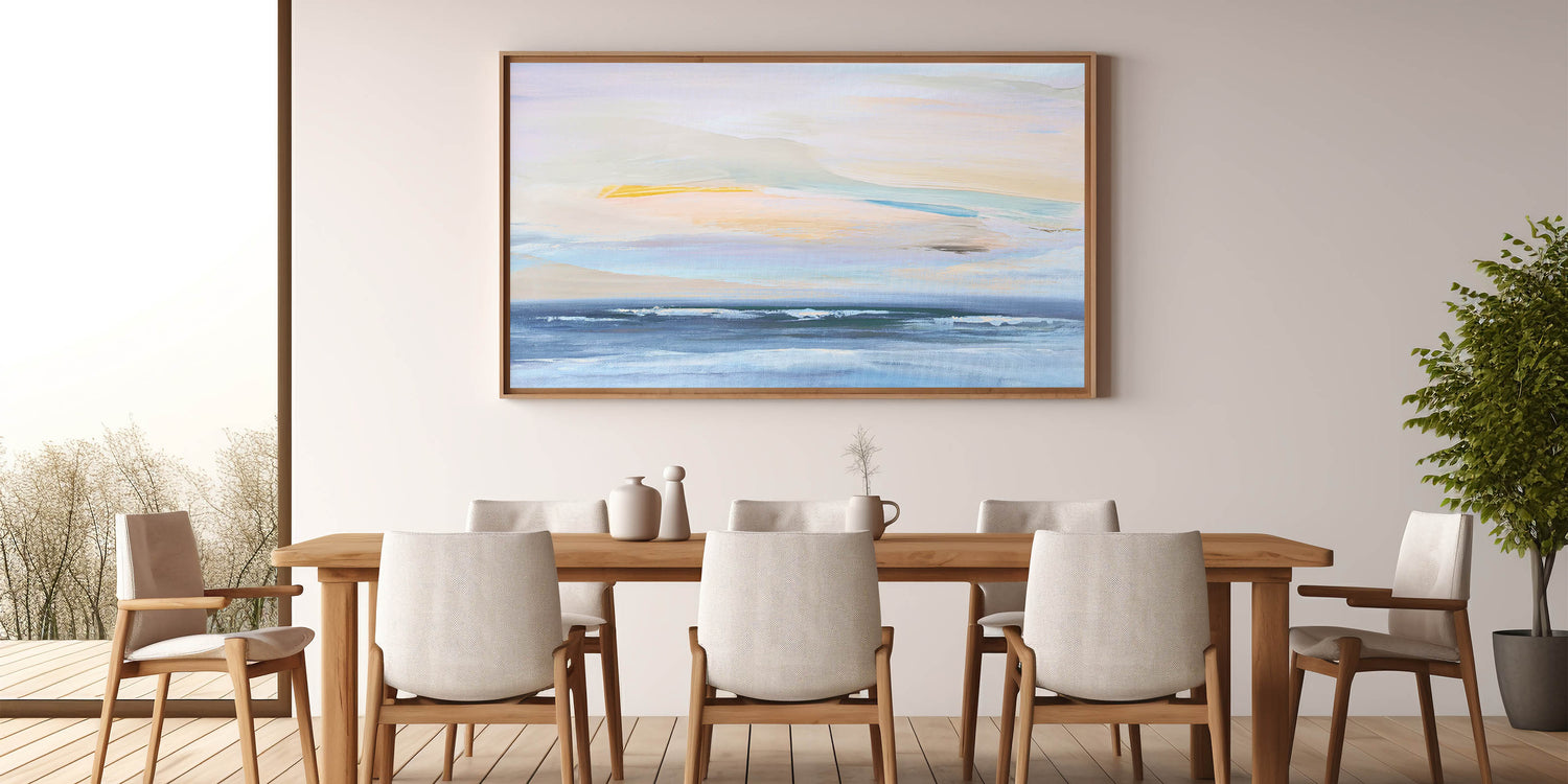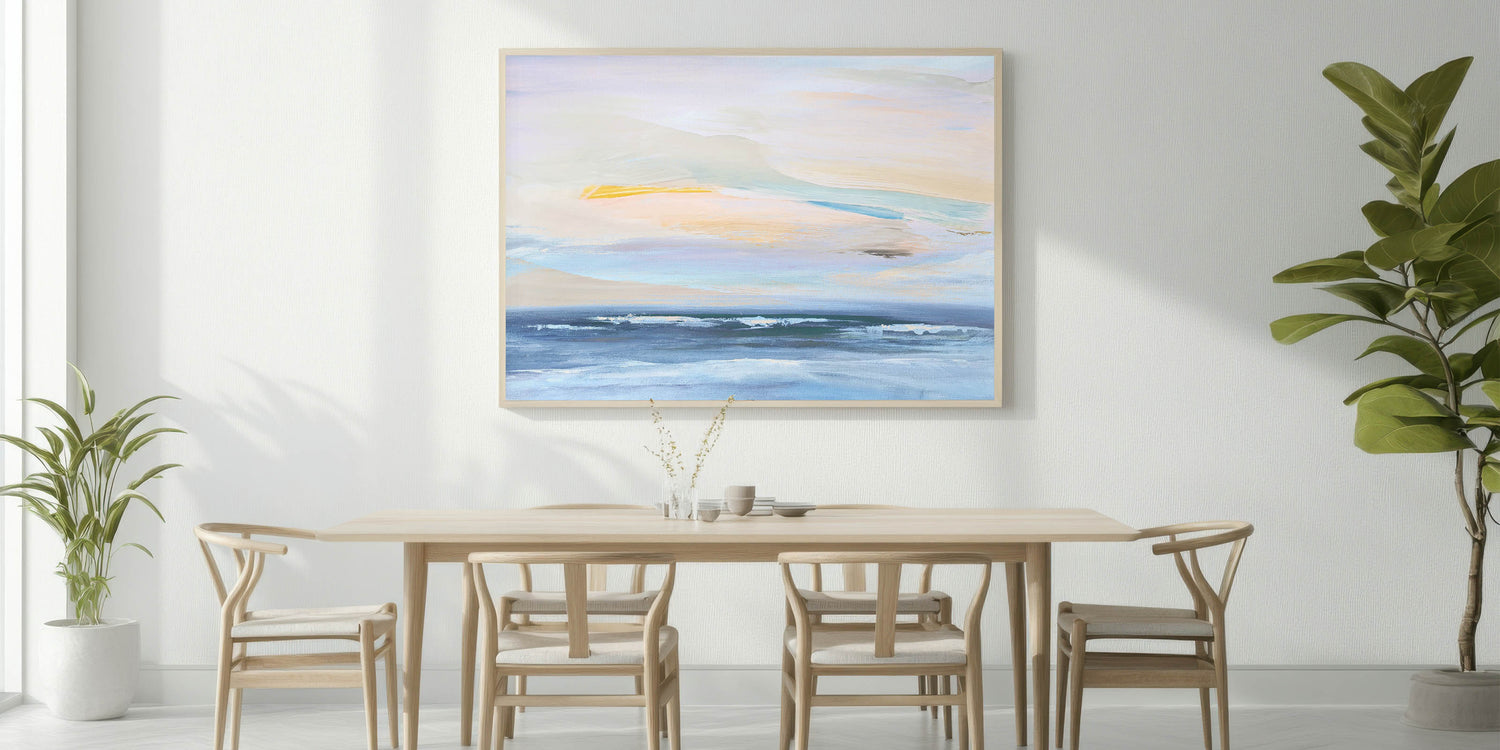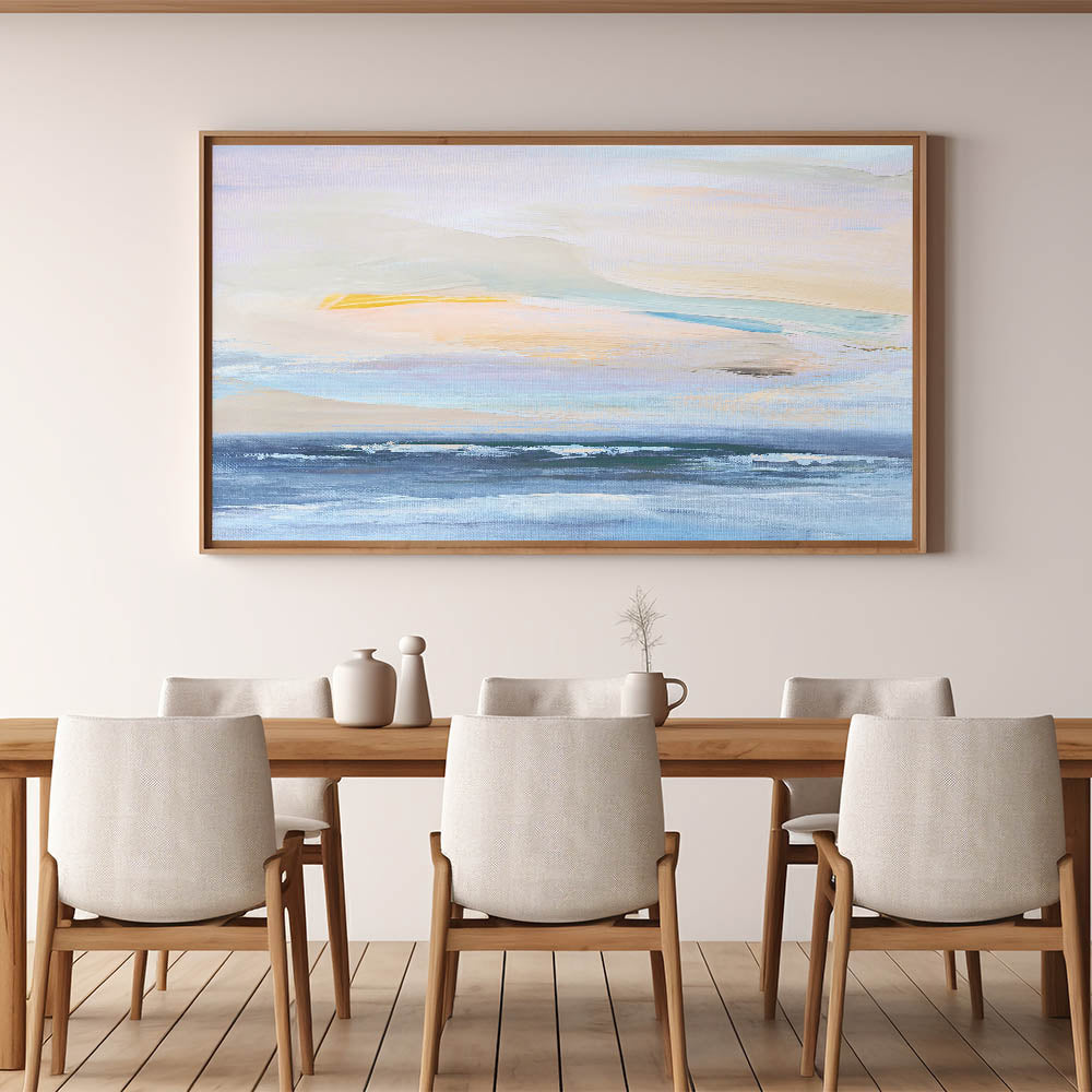 Add this abstract seascape to your decor for a refreshing, lively atmosphere, perfect for evoking the tranquility of sunset by the ocean.