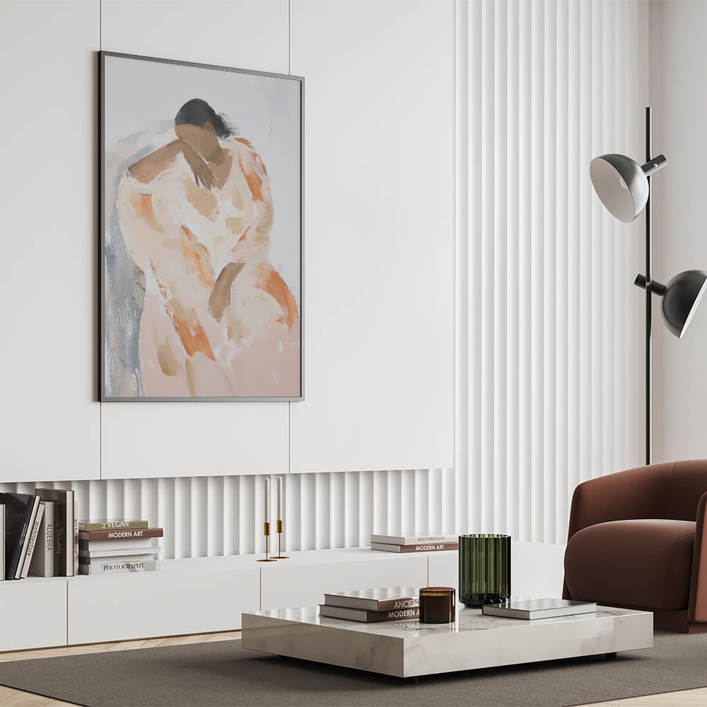 - Artistic Design: Combines abstract human figures with soft, blended textures and tones