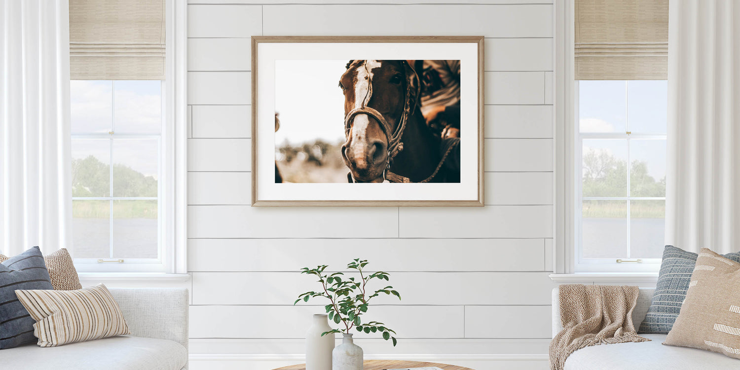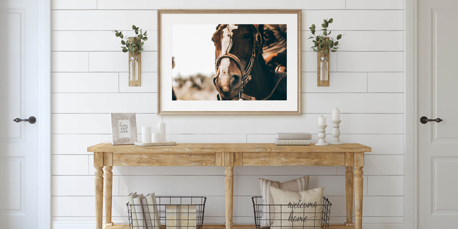 Capture the beauty of country living with this captivating farmhouse wall art featuring a close-up of a horse. This stunning piece brings the essence of rural life into your home with its rich tones and intricate details, making it a perfect addition to any farmhouse or country-style decor. The close-up of the horse’s face creates an intimate and nostalgic feel, ideal for adding warmth and character to living rooms, entryways, or bedrooms.