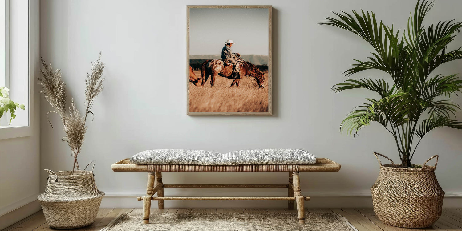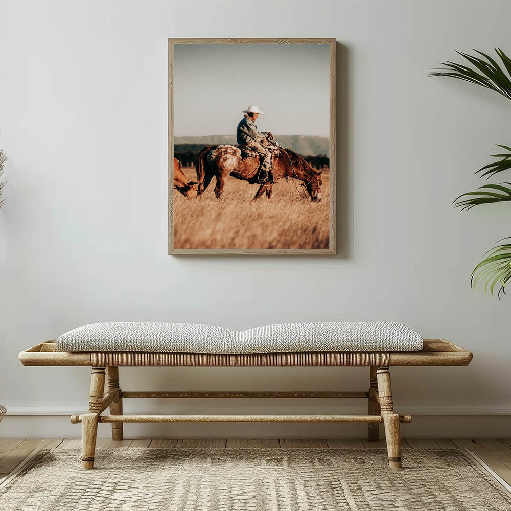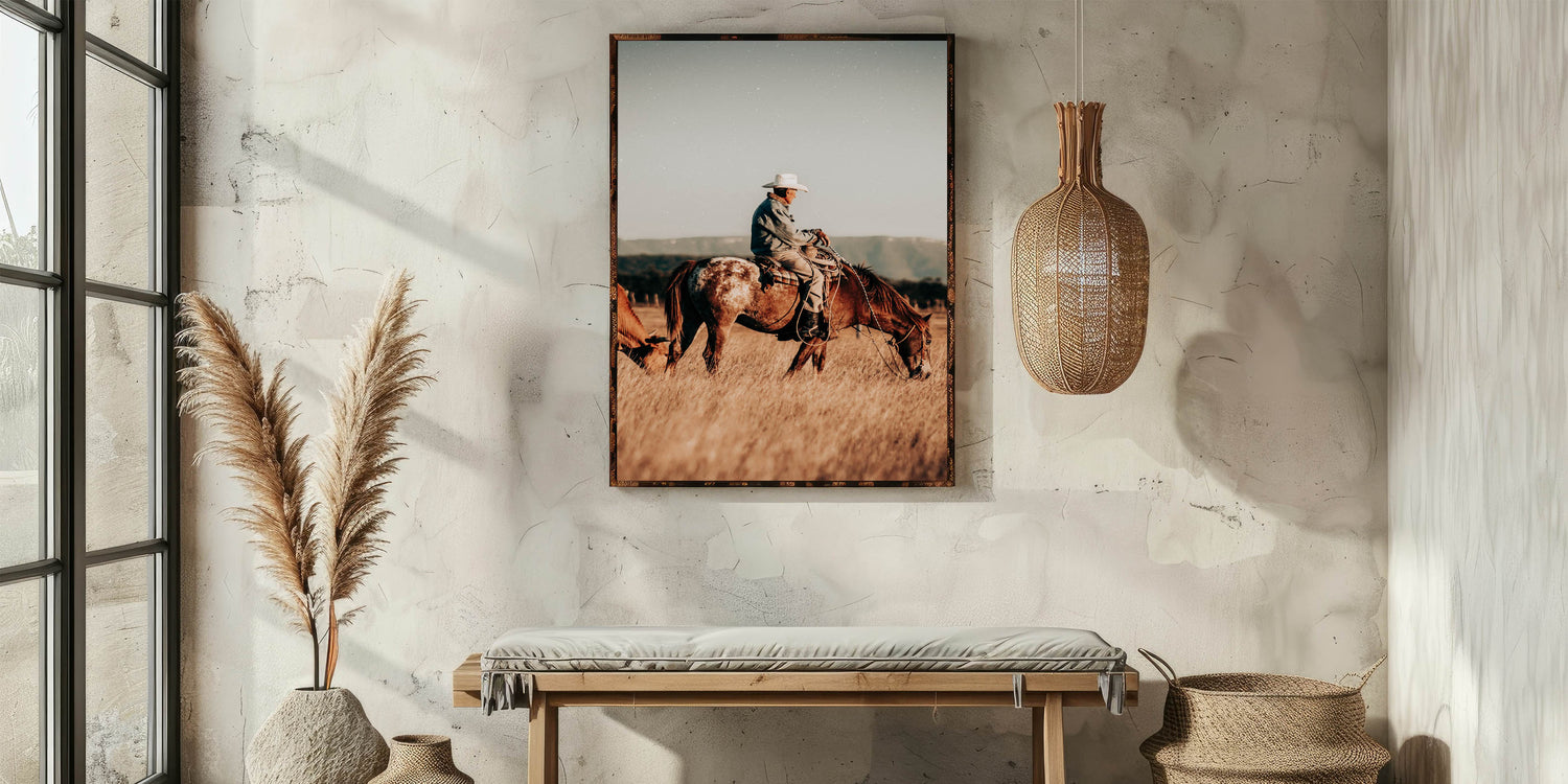 Cowboy and Horse Wall Art | Rustic Farmhouse Decor | Country Style Print