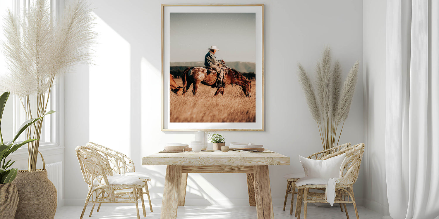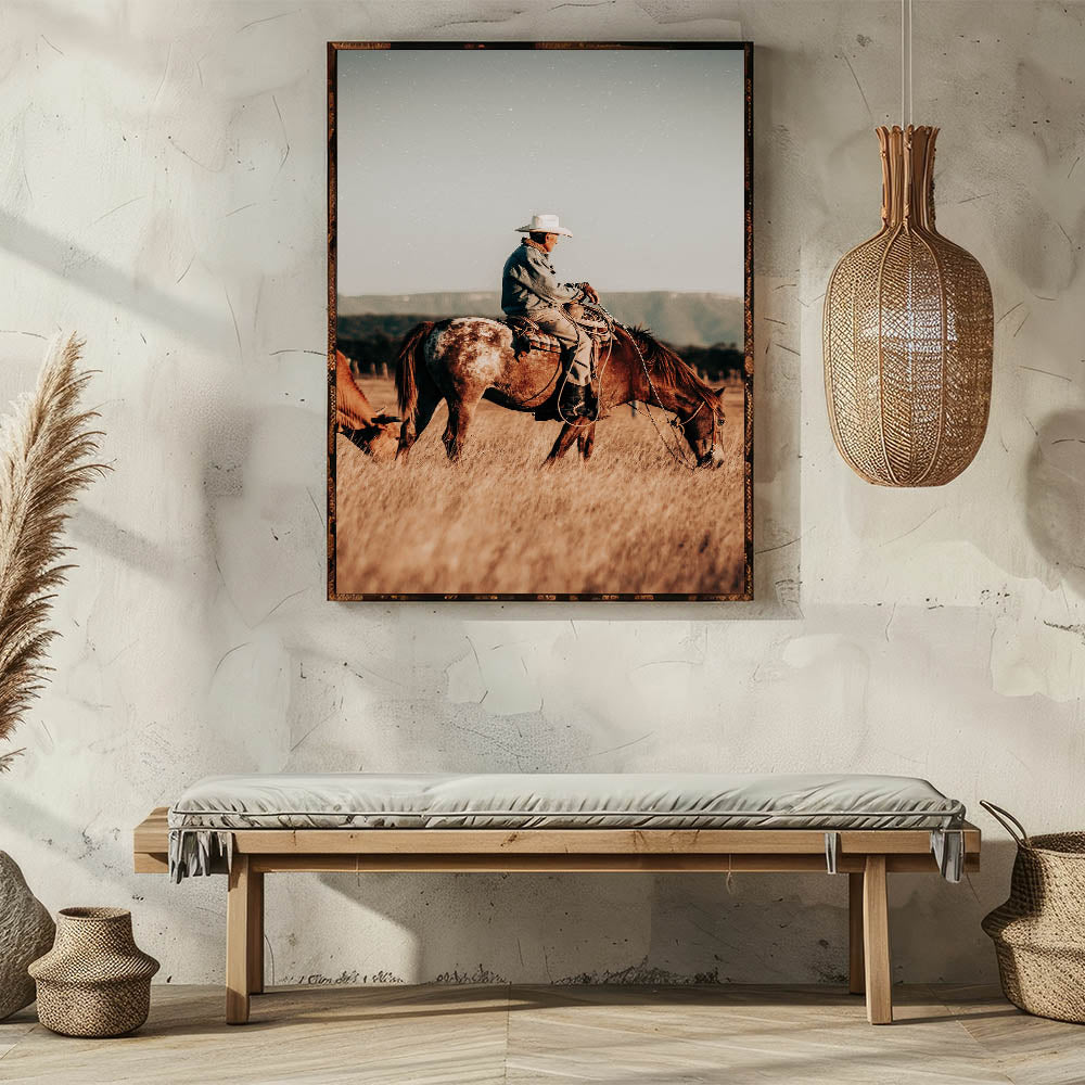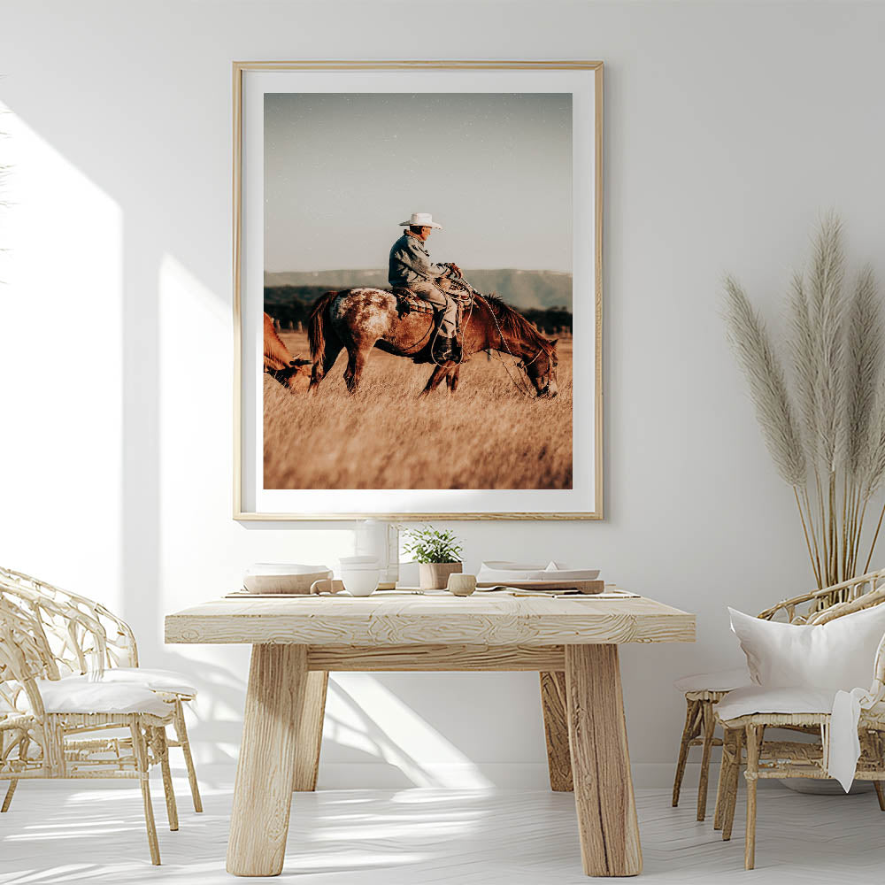 Cowboy and Horse Wall Art | Rustic Farmhouse Decor | Country Style Print
