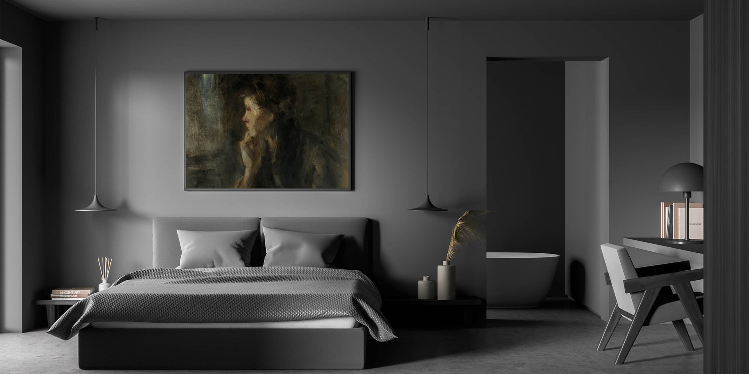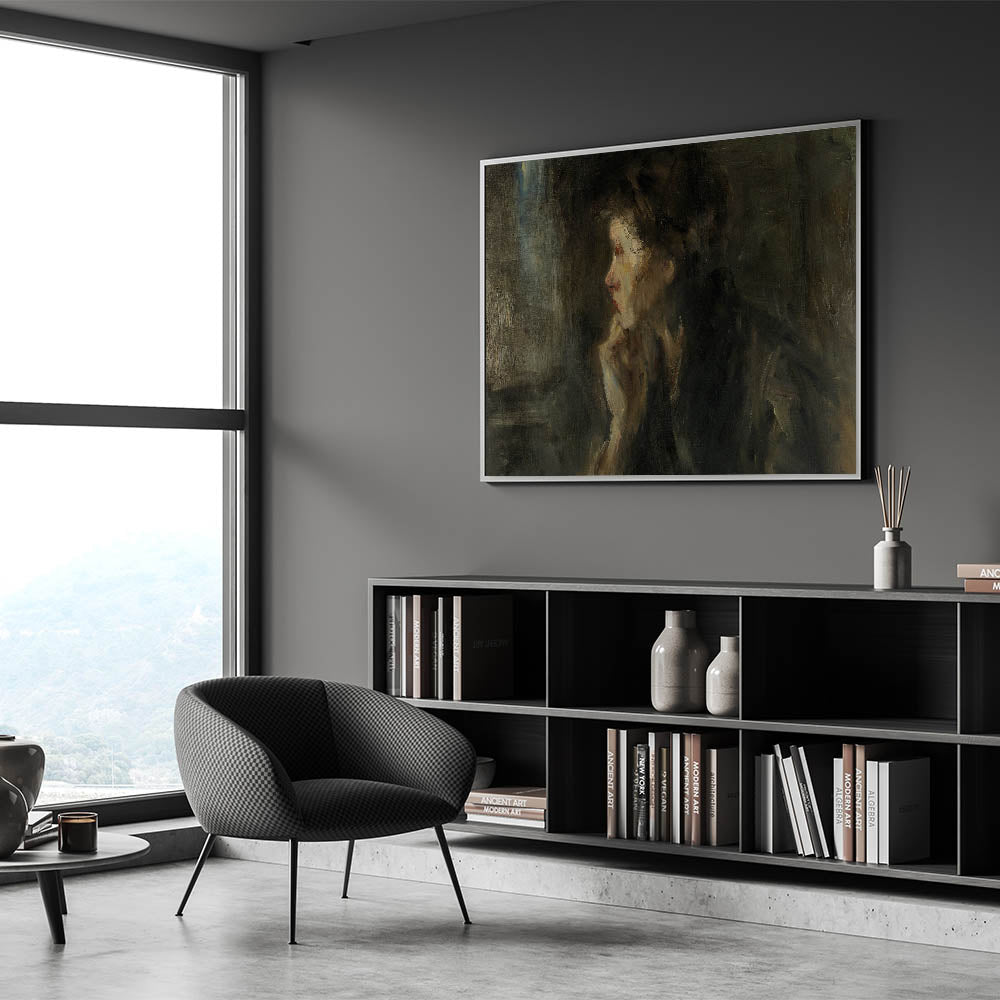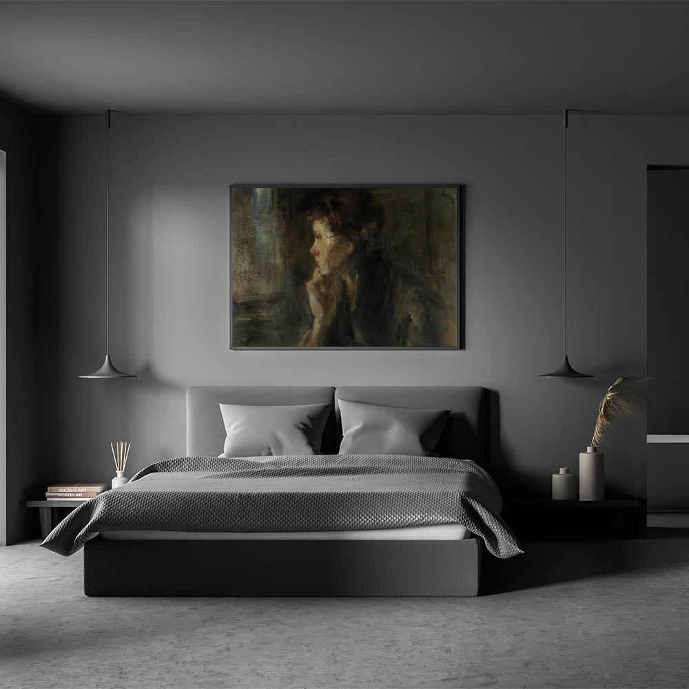 Immerse yourself in the intellectual and shadowy world of Dark Academia with this evocative wall art piece. The soft brushstrokes and moody color palette create a reflective atmosphere that invites introspection. Perfect for those who adore Gothic art decor and want to transform their space into a study filled with mystery and depth.