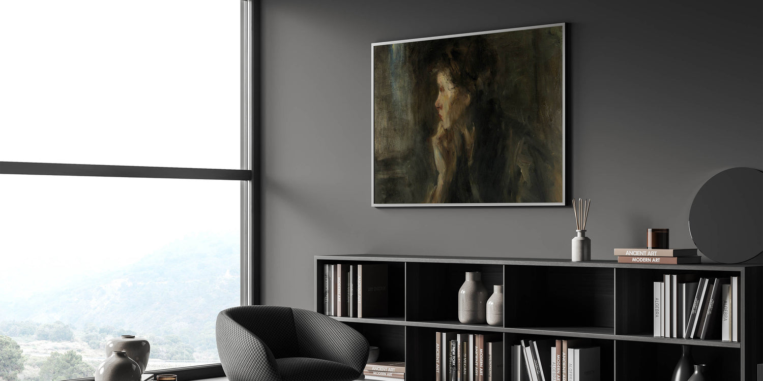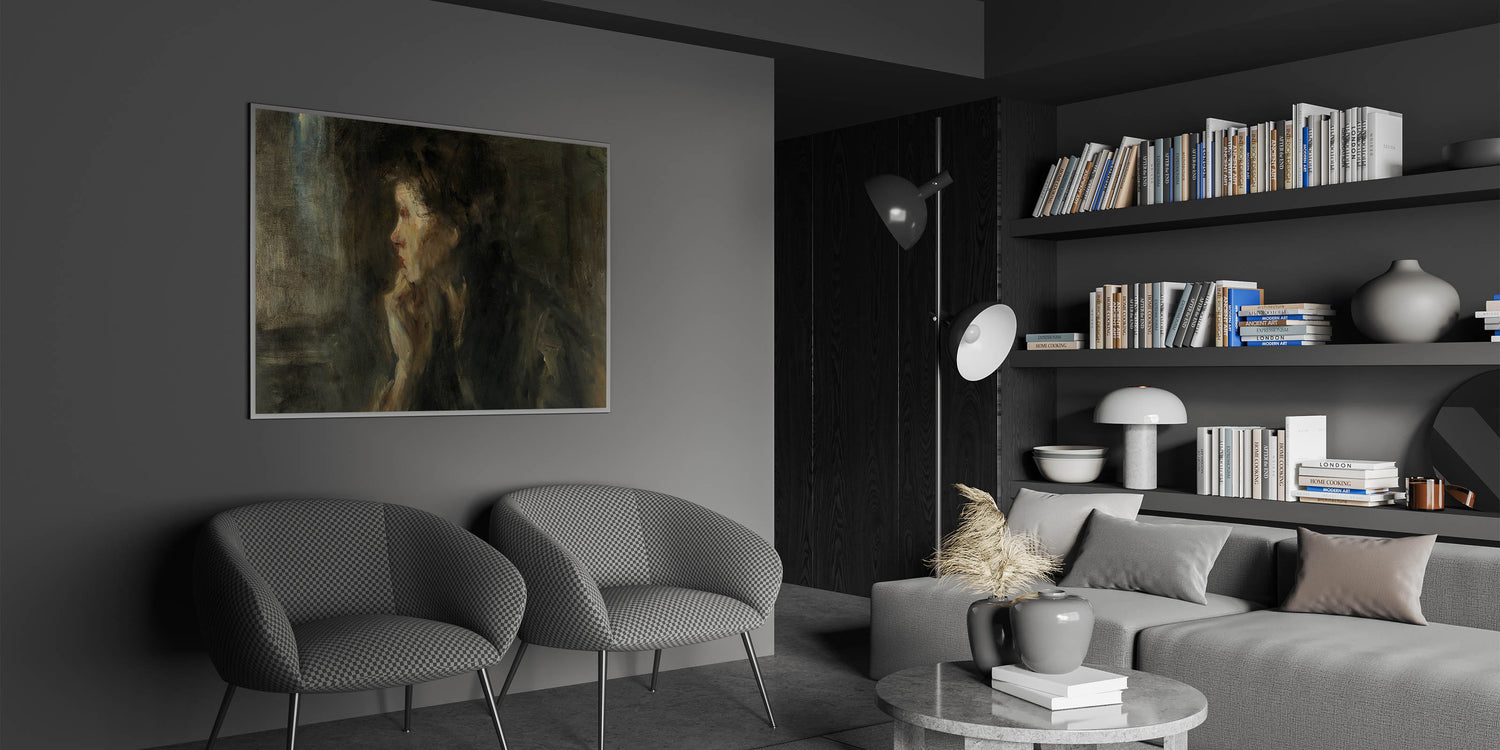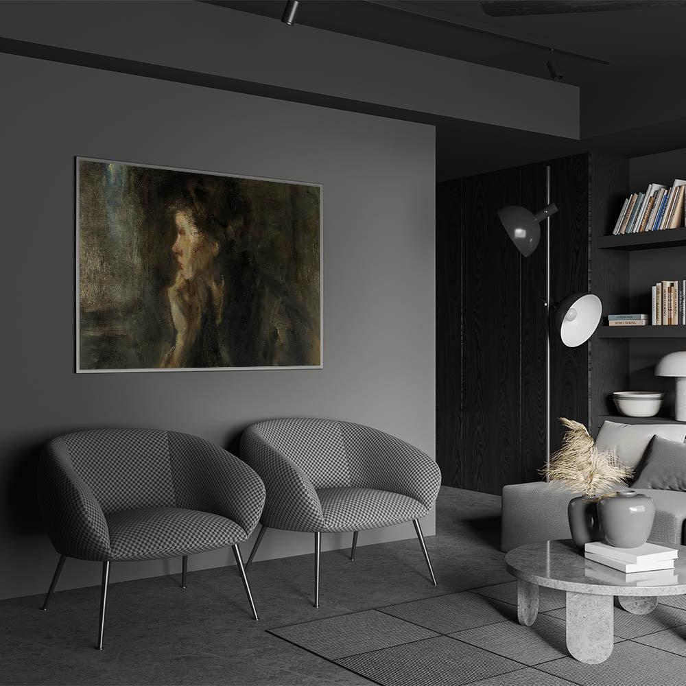 Immerse yourself in the intellectual and shadowy world of Dark Academia with this evocative wall art piece. The soft brushstrokes and moody color palette create a reflective atmosphere that invites introspection. Perfect for those who adore Gothic art decor and want to transform their space into a study filled with mystery and depth.