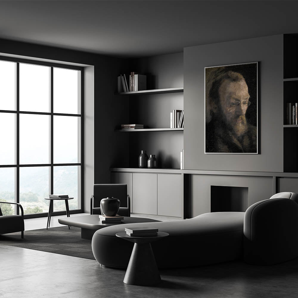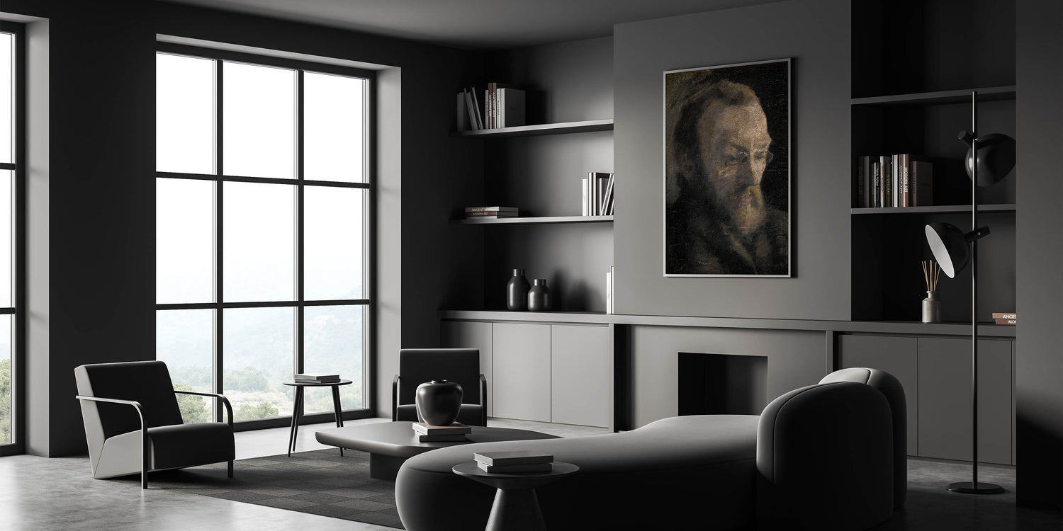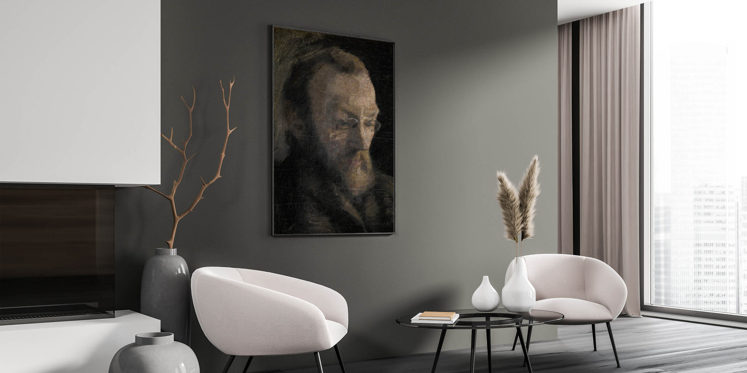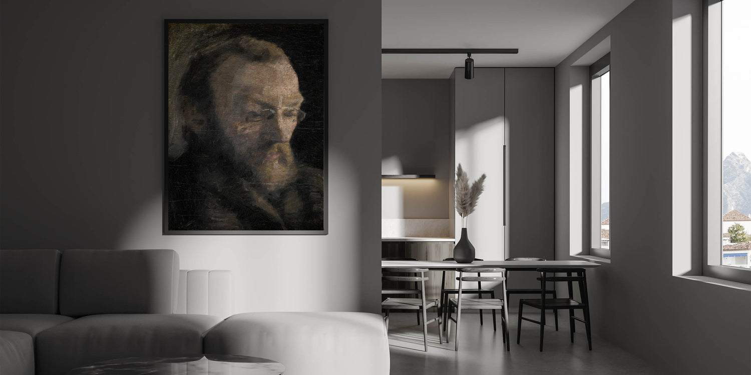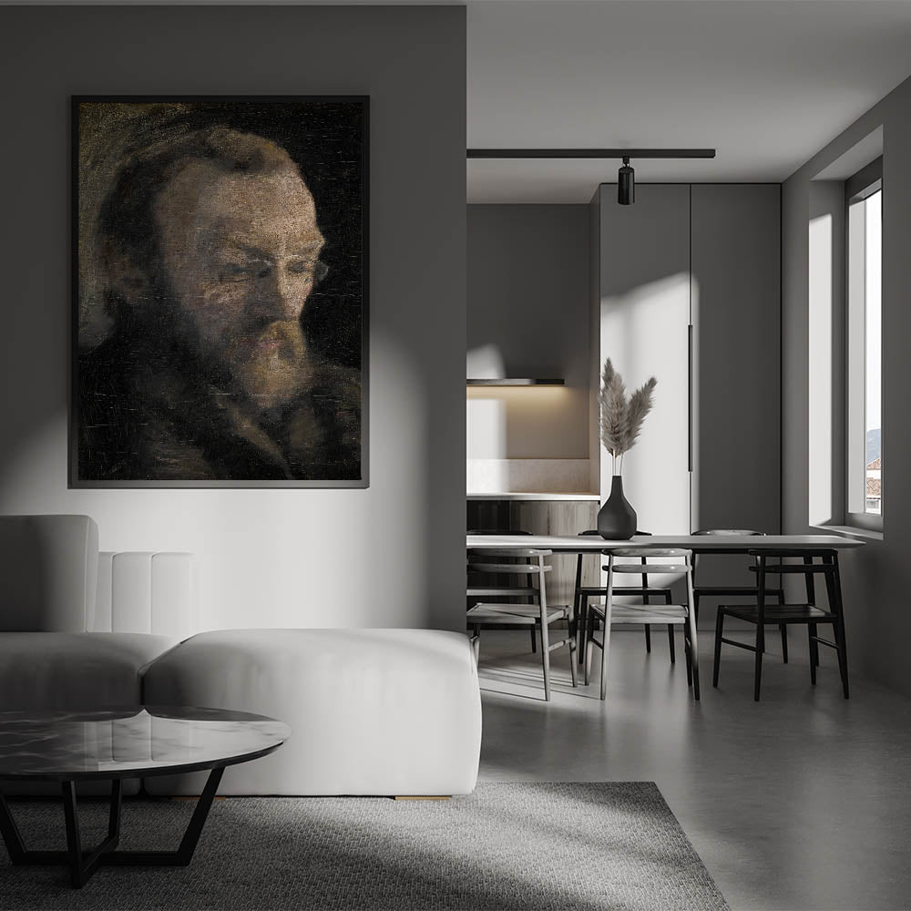 • Subject: A detailed portrait of an elderly man, ideal for adding a moody, contemplative atmosphere to your study, library, or living room