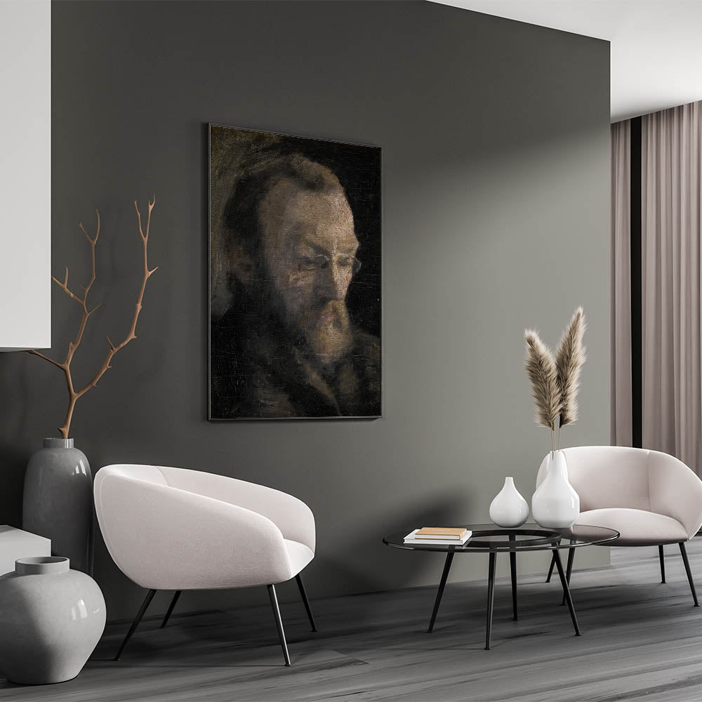 This compelling Dark Academia wall art captures the quiet contemplation of an elderly man, his face softened by shadows and rich textures. The muted palette and somber tones give the portrait a sense of depth and introspection, perfect for lovers of vintage Gothic decor and moody aesthetic art. The man’s thoughtful expression invites reflection, making this artwork an ideal choice for spaces dedicated to study and intellectual pursuit.