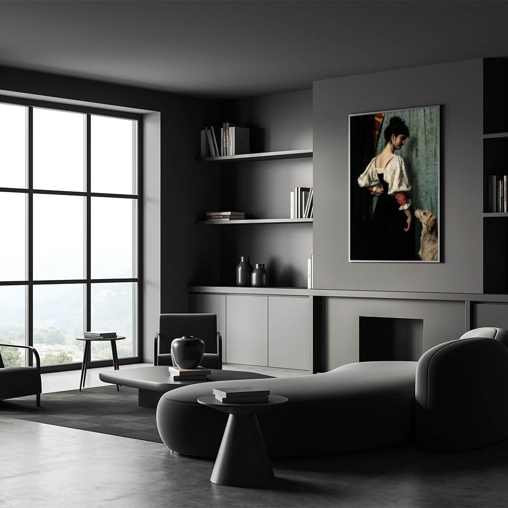 Bring a sense of quiet reflection and vintage charm into your space with this Dark Academia wall art, featuring a woman and a loyal dog in a contemplative pose. The soft, muted tones of the painting, paired with the woman’s elegant dress and the gentle presence of the dog, evoke the intellectual depth and understated beauty typical of academic style art. Perfect for lovers of moody aesthetic decor and vintage Gothic prints, this artwork adds a layer of quiet sophistication and storytelling to any room.