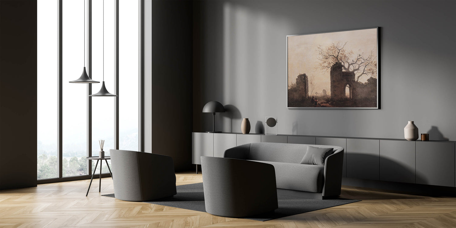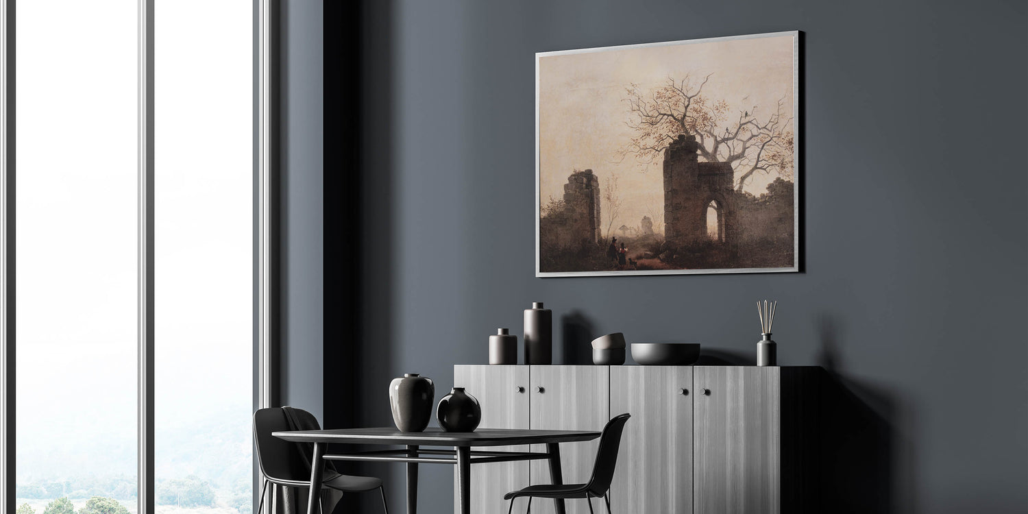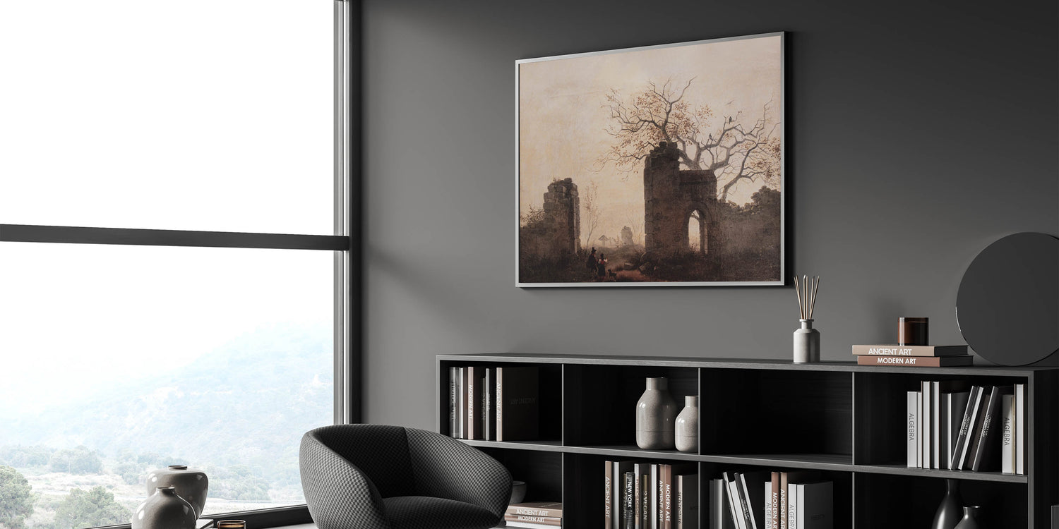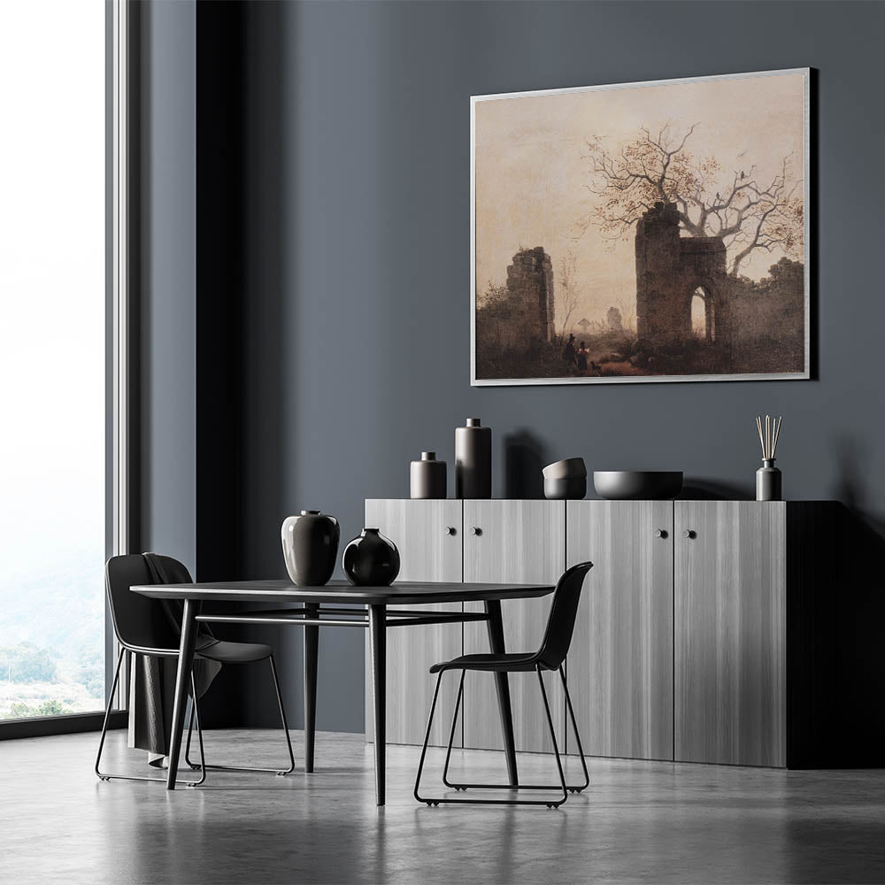 Dark Art Decor - Timeless Ruins and Bare Tree Scene for Moody Interiors