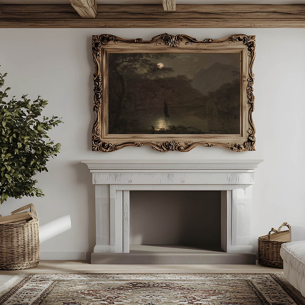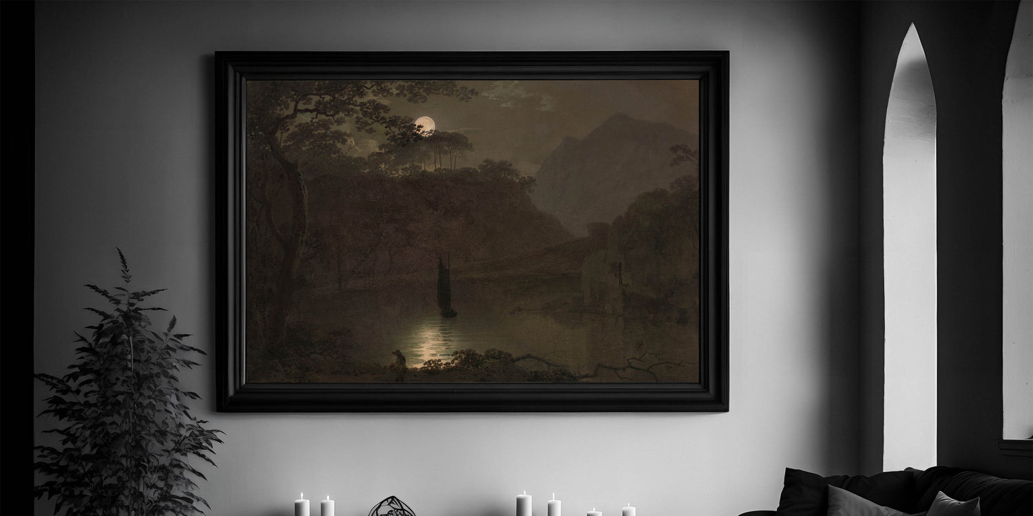 Dark Moody Wall Art - Atmospheric Moonlit Landscape for Timeless Decor