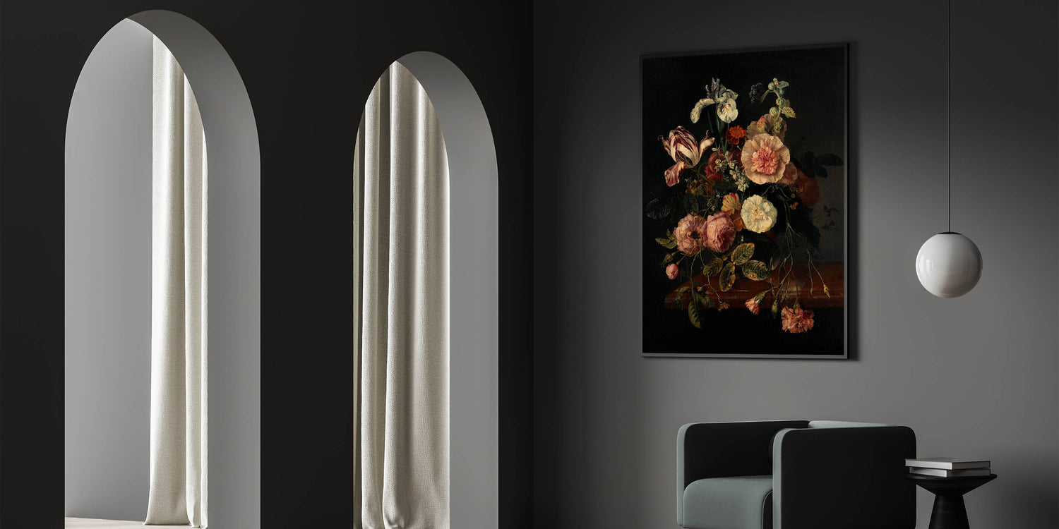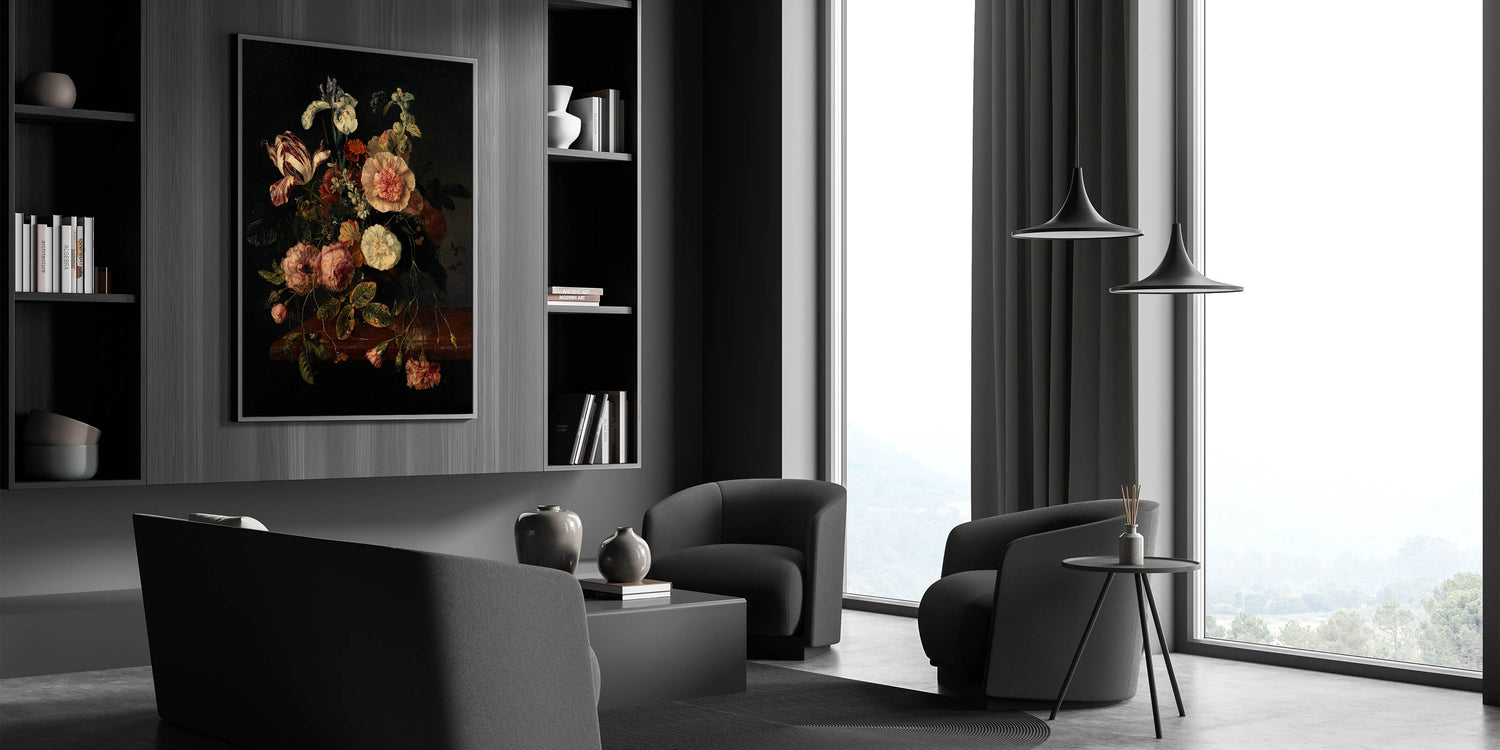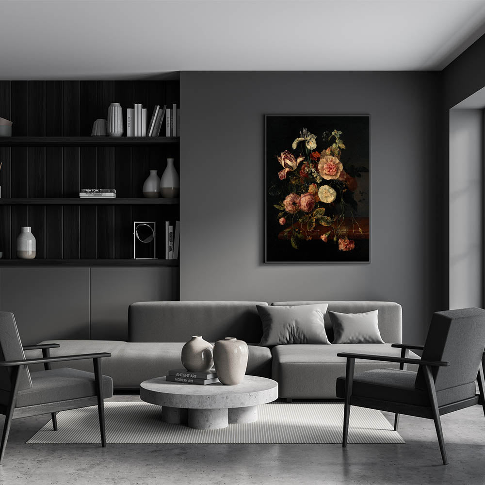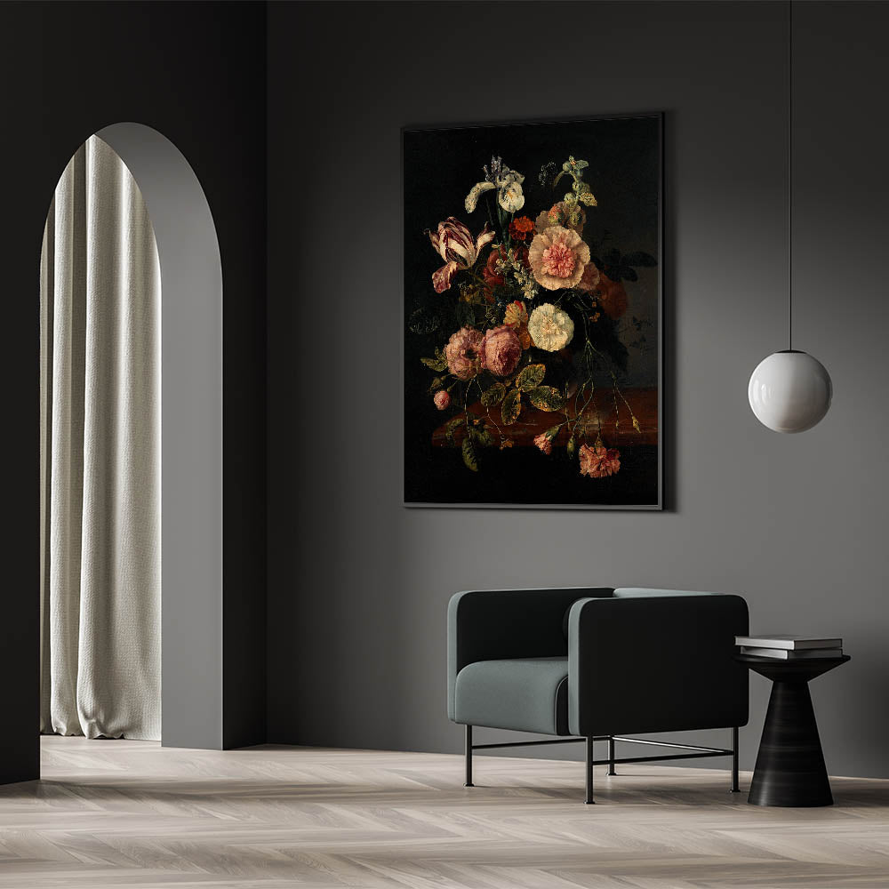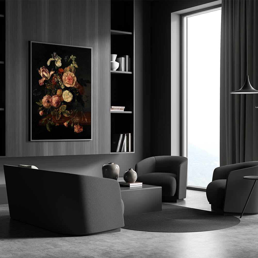 Dark Moody Wall Art - Classic Floral Bouquet for Elegant Home Decor