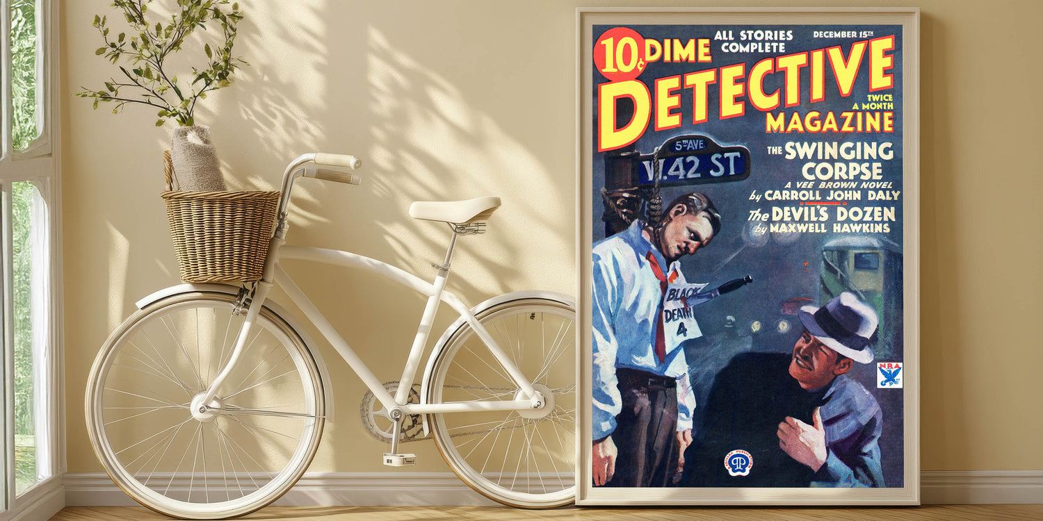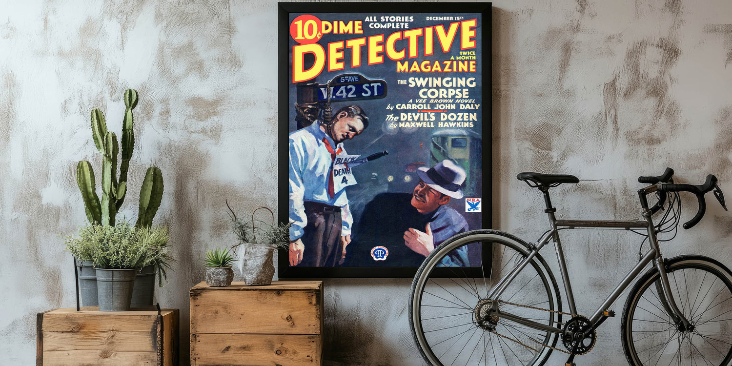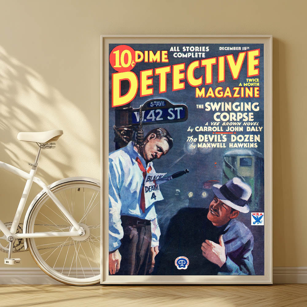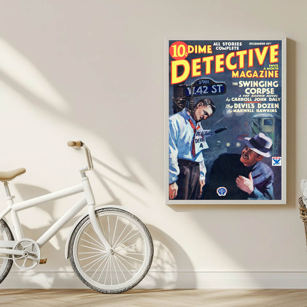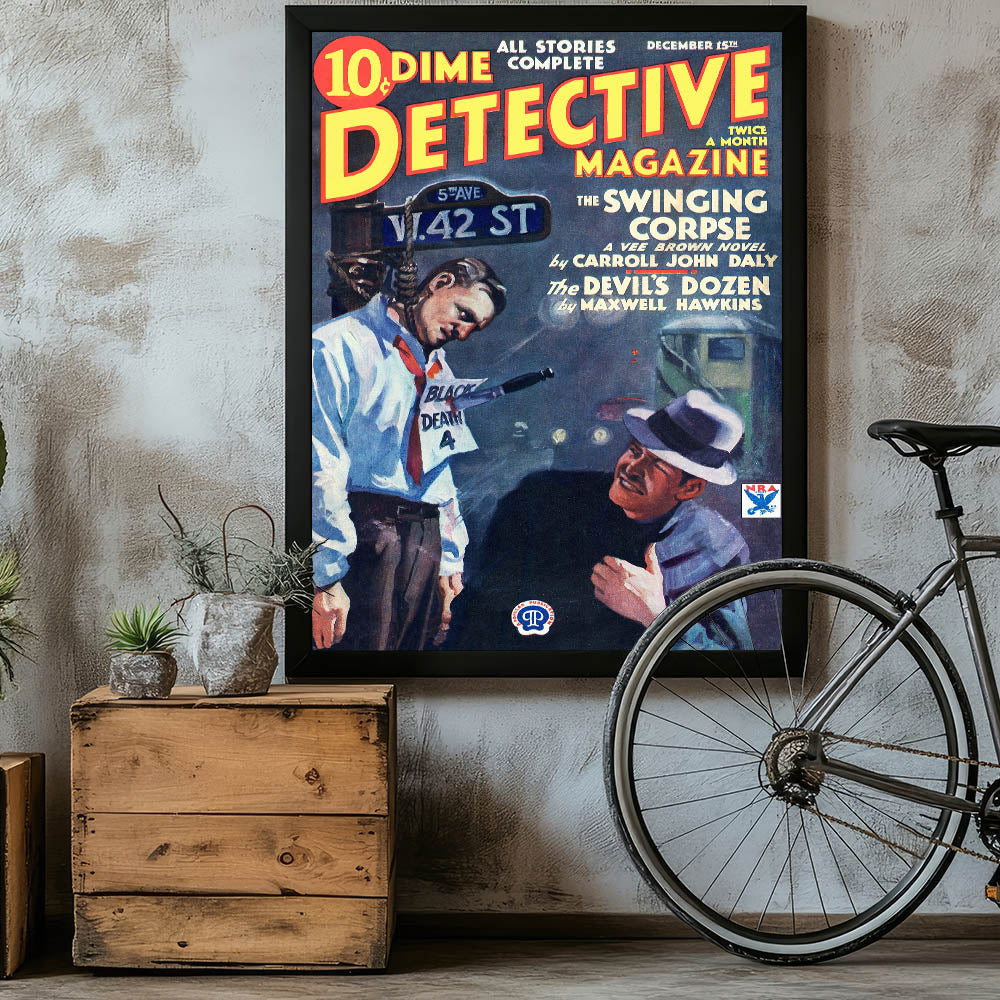 Dime Detective Magazine Cover Art – Retro Crime Scene Wall Decor