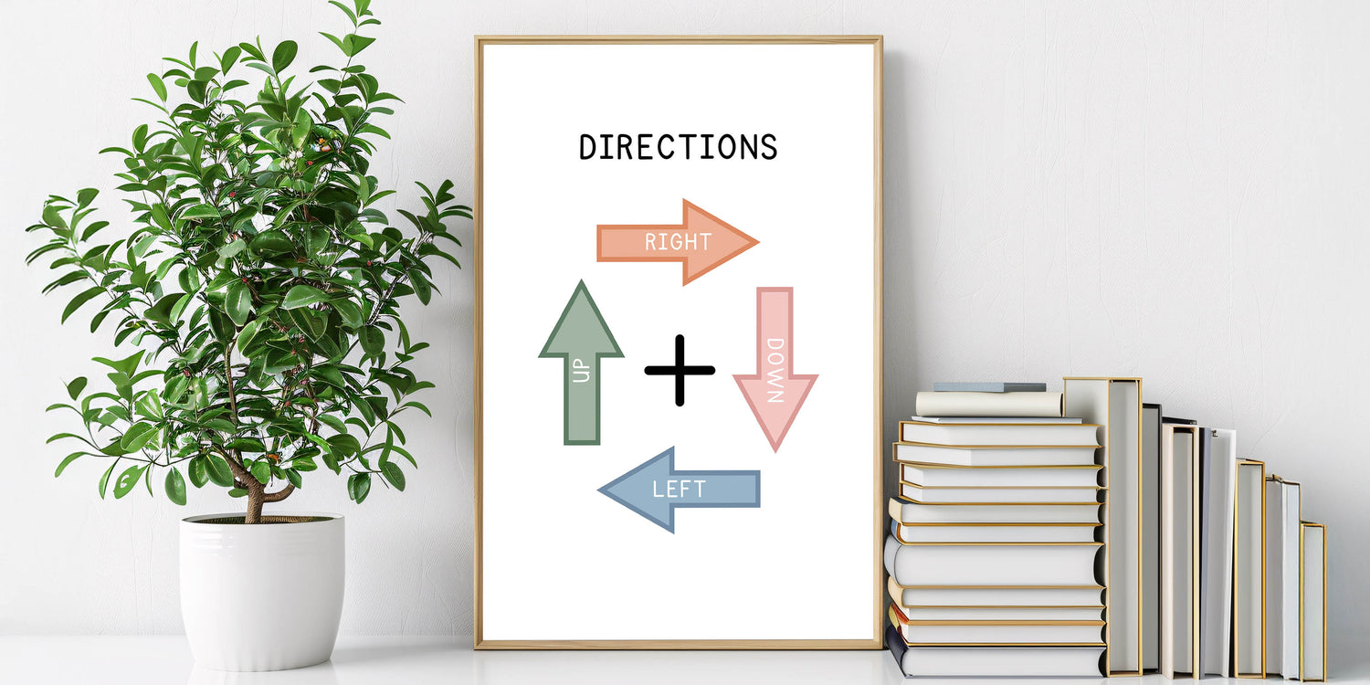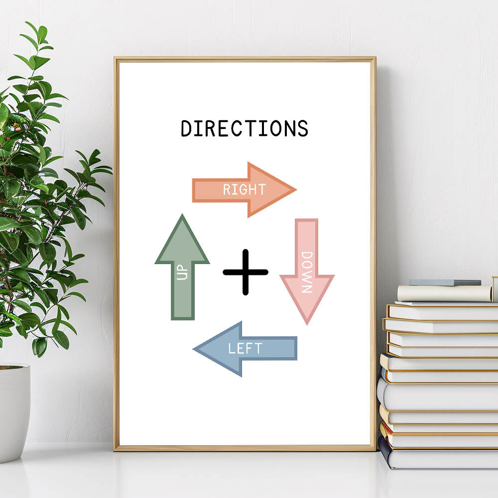 Directions Typography Art Print – Up, Down, Left, Right Wall Art